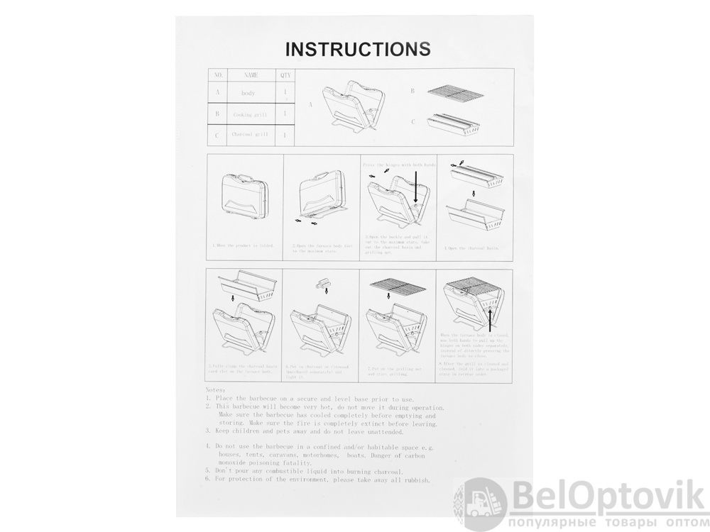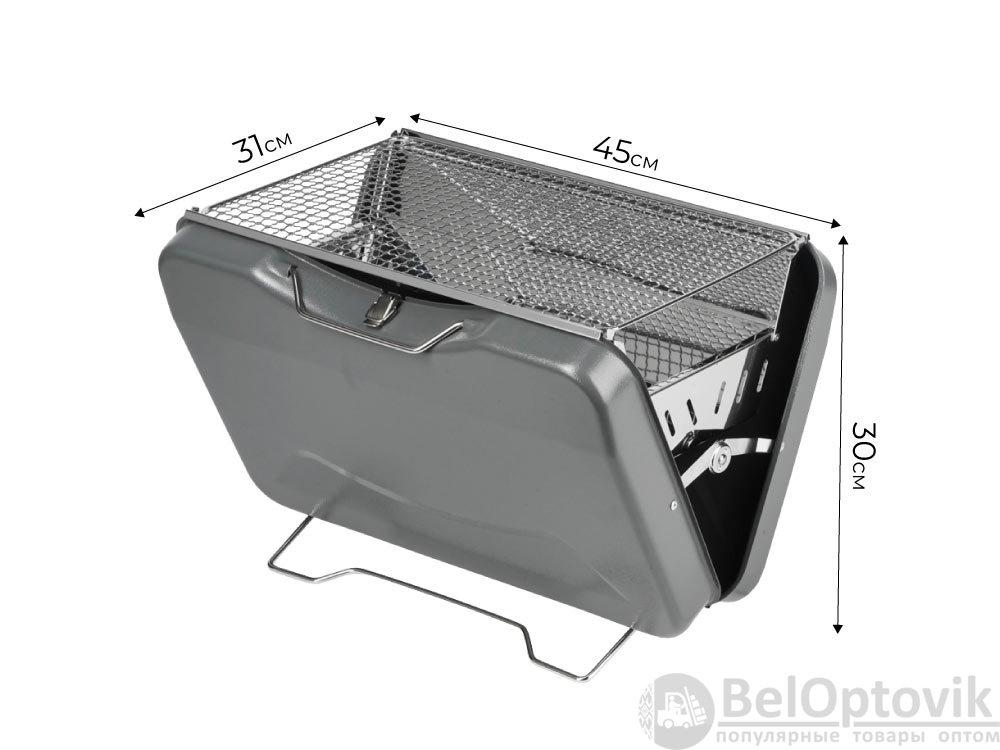 - Комплектность: гриль-чемодан, подставка для угля, решетка для гриля