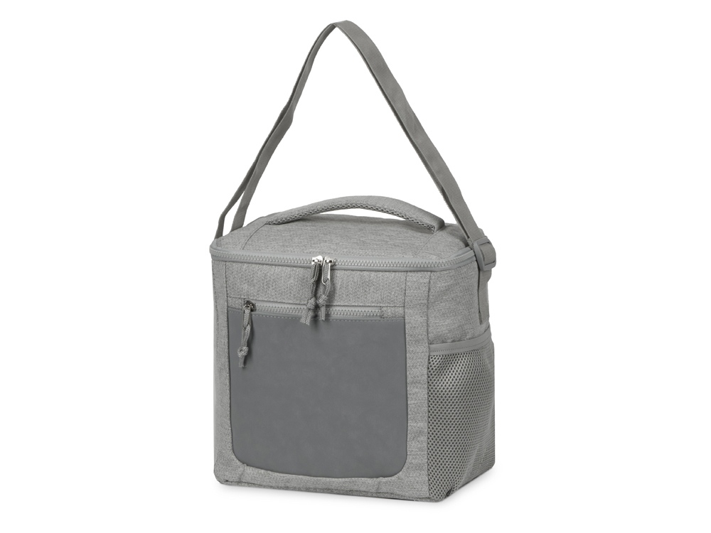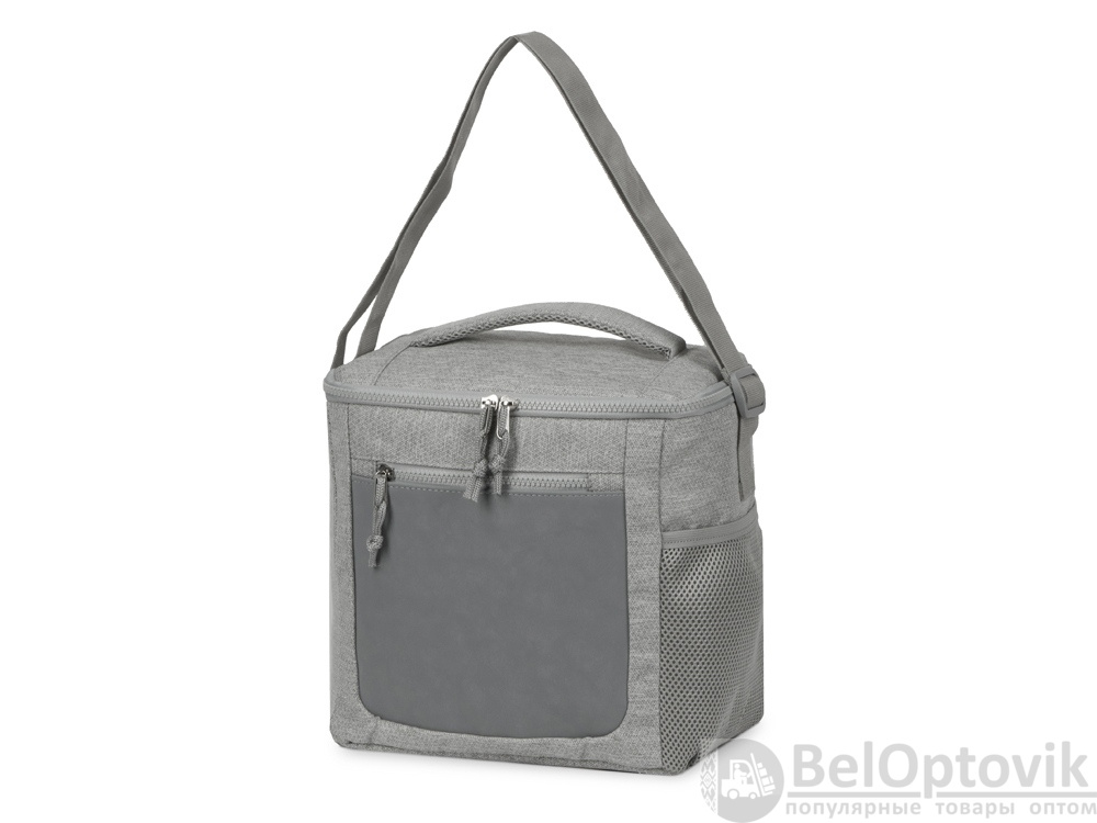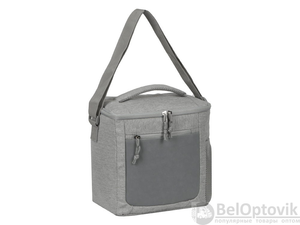 Сумка-холодильник сохранит температуру ваших продуктов в течение 2-4 ч. в зависимости от окружающей температуры. Спереди расположен карман на молнии со вставкой из экокожи. Сбоку сетчатый эластичный карман. Сверху ручка для переноски сумки в руке. Лямка на плечо регулируется по длине.