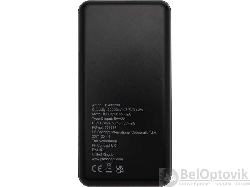 Портативное зарядное устройство изготовлено из переработанного пластика ABS. Портативное зарядное устройство работает от литий-полимерного аккумулятора класса А емкостью 20 000 мАч с длительным сроком службы для быстрой зарядки. Индикаторы питания показывают уровень оставшейся энергии, поэтому вы всегда будете знать, когда устройство необходимо зарядить. Вход Тип-C 5 В/2 А, вход Micro USB 5 В/2 A, двойной выход USB-A 5 В/2 А, общая мощность 10 Вт. Поставляется с зарядным кабелем USB-A - Type-C 2 А из термополиэтилена длиной 30 см, инструкцией по эксплуатации и подарочной коробкой из крафт-бумаги.