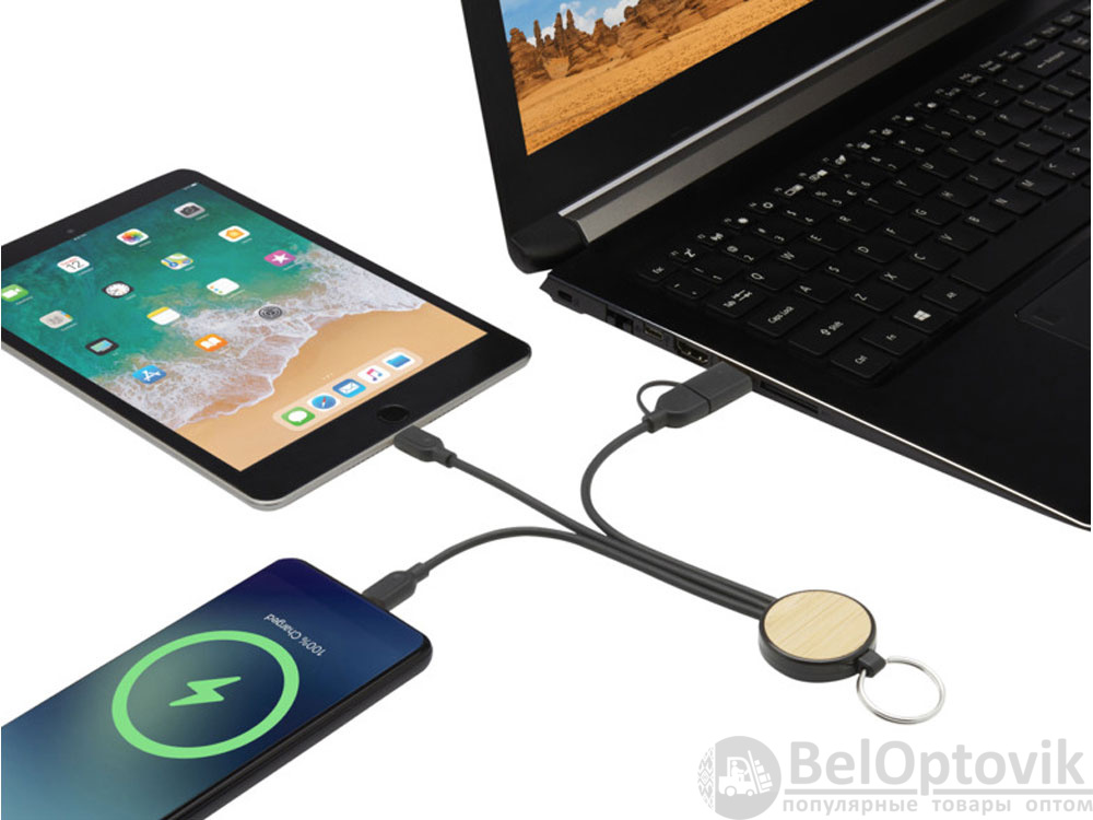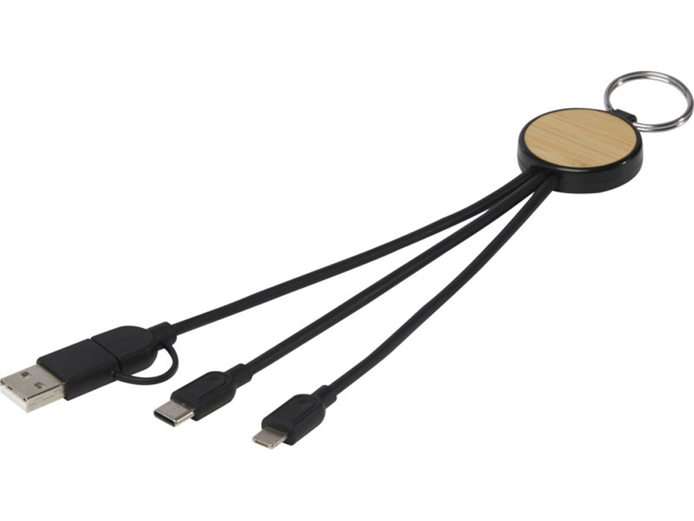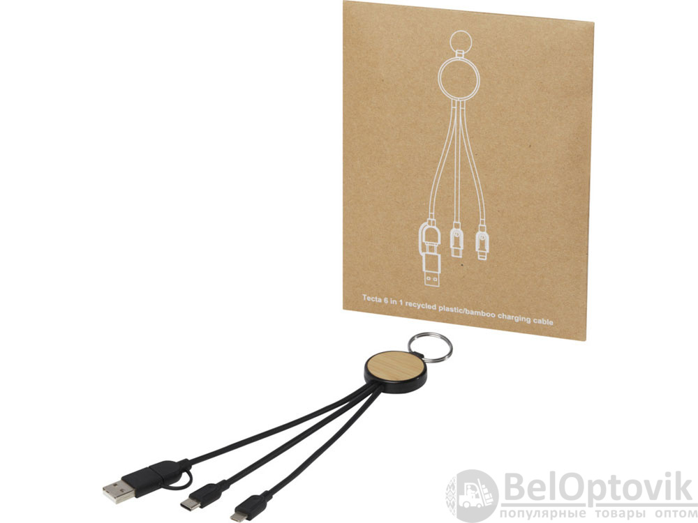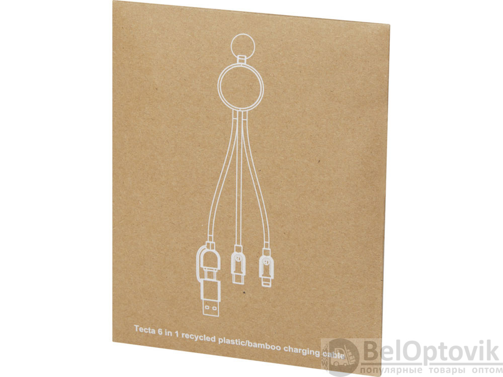 Зарядный кабель Tecta «6 в 1» из бамбука и переработанного пластика демонстрирует, где экологичность сочетается со стилем. Кабель длиной 25 см из переработанного TPE-пластика обеспечивает мощность зарядки 2 А. Входная мощность: USB A и Type-C. Выход: Type-C, micro USB и двойные наконечники 2 в 1 micro USB и Lightning, совместимые как с устройствами iOS, так и с устройствами Android. Алюминиевые наконечники USB обеспечивают надежное и стабильное соединение, гарантируя надежную зарядку каждый раз. Серебряный брелок из нержавеющей стали служит удобным способом для организации и переноски кабеля. Упакован в конверт из крафт-бумаги.