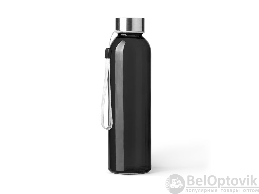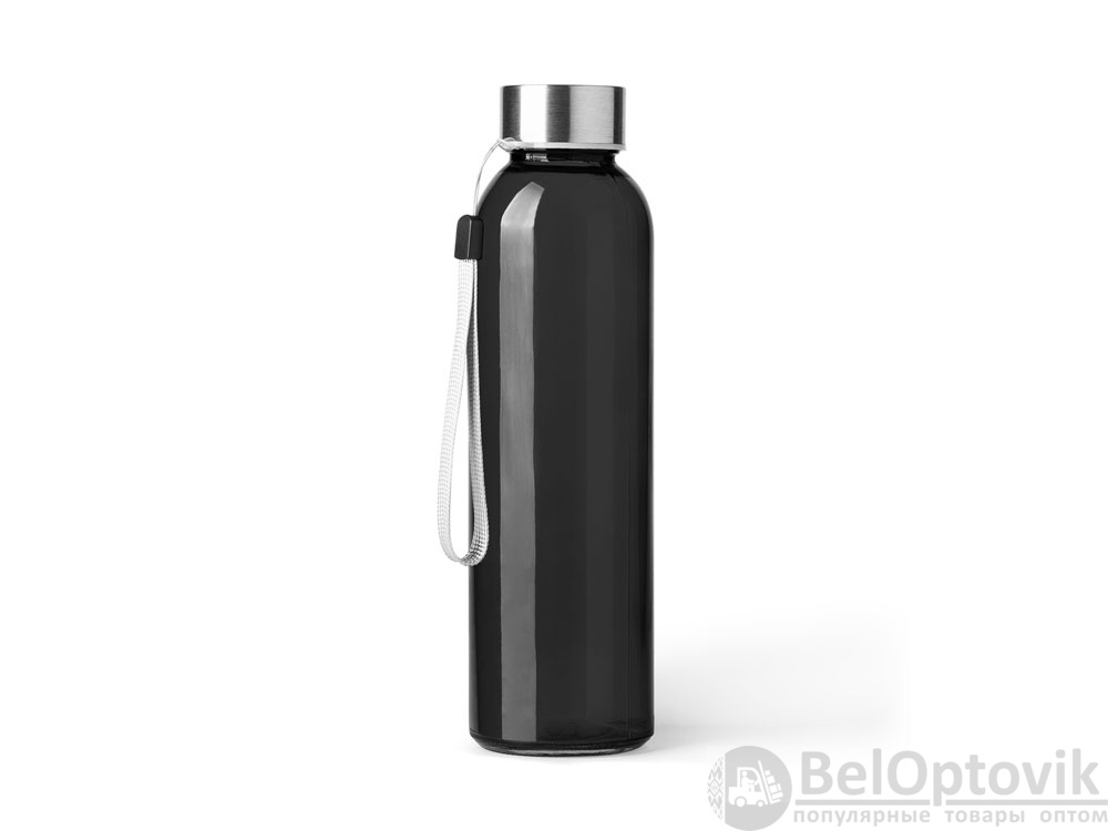 Стеклянная бутылка емкостью 500 мл. Большое разнообразие цветов, с завинчивающейся крышкой из нержавеющей стали и удобной для транспортировки благодаря ремешку серого цвета.