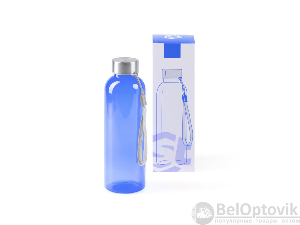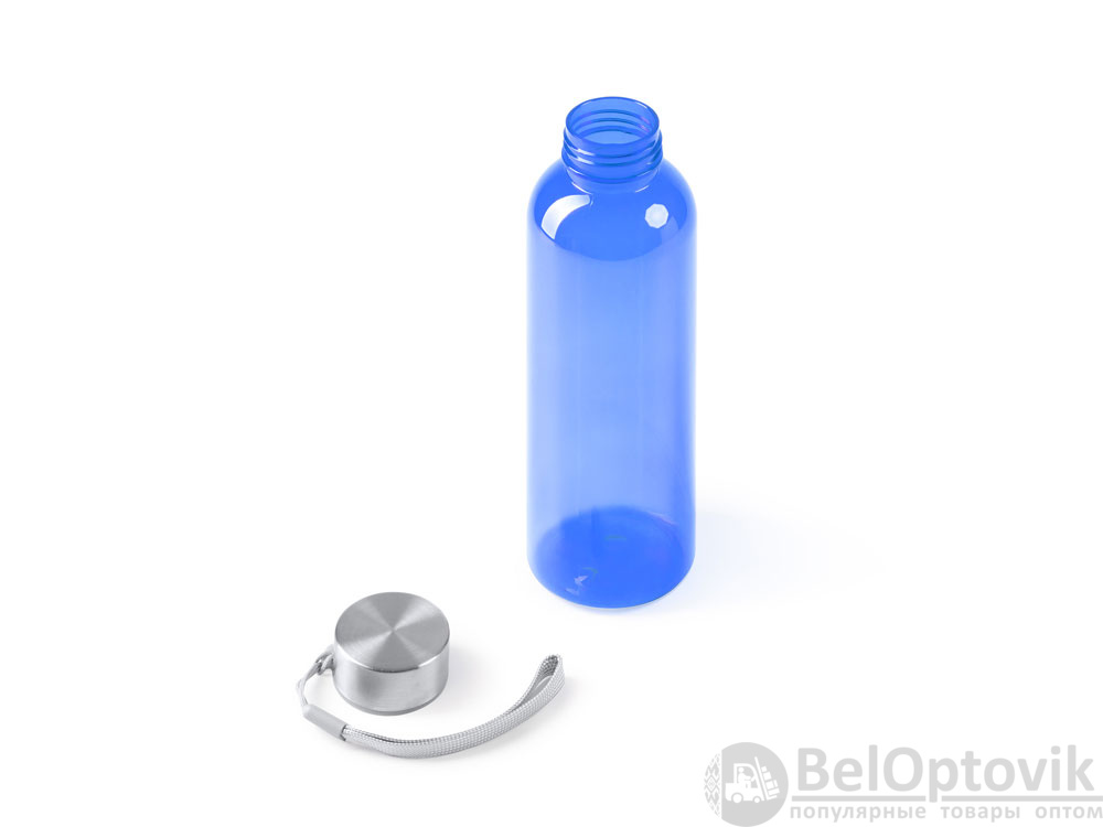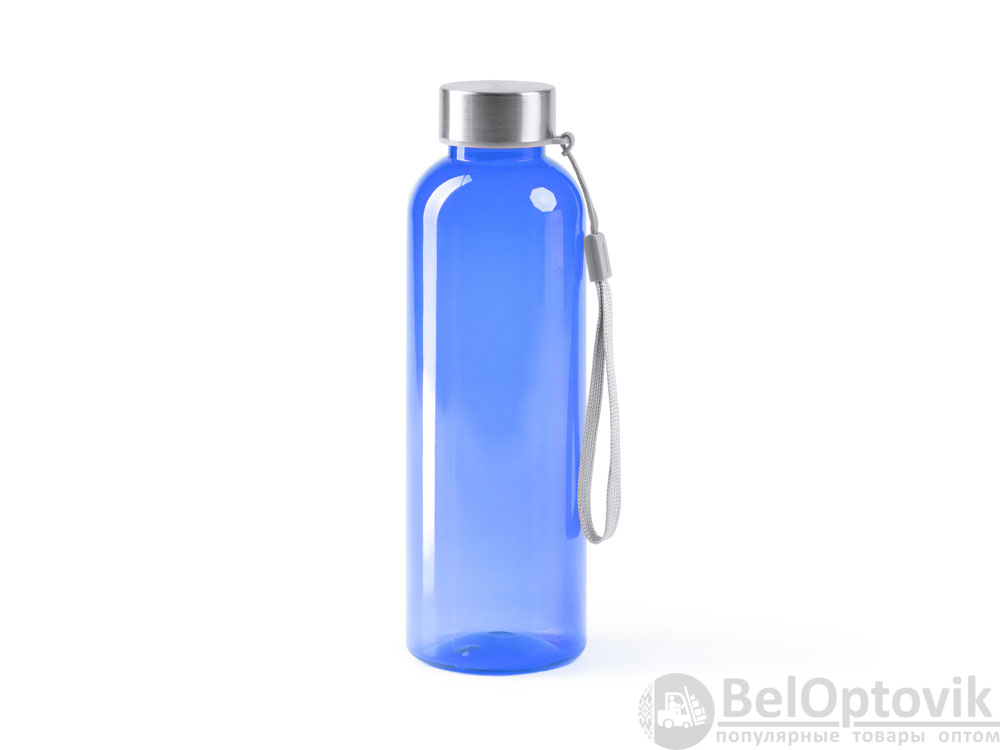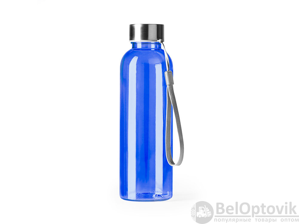 Бутылка из РПЭТ с полупрозрачным цветным корпусом. Емкость 600 мл. Ремешок для переноски в комплекте