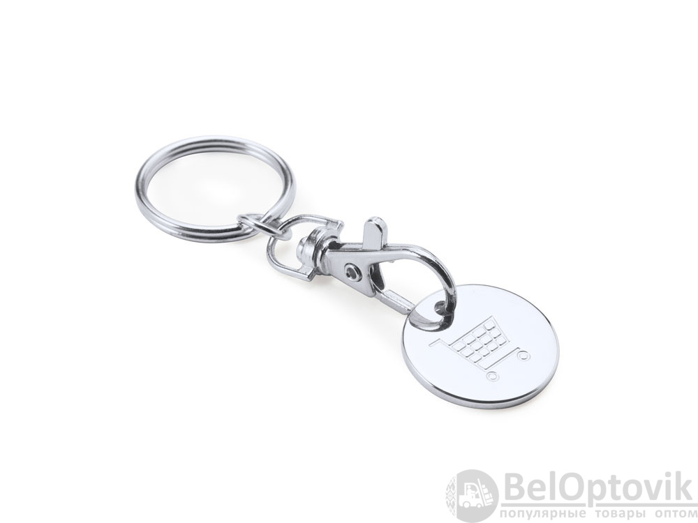 Металлический брелок с цветной эмалью в форме монеты для тележки супермаркета.