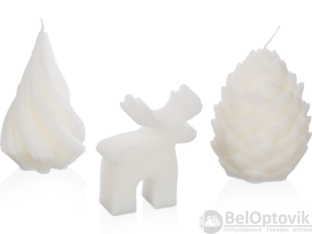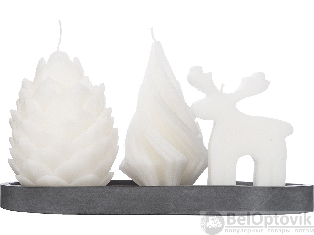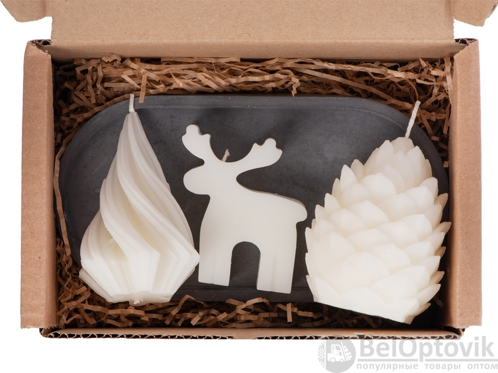 В набор входят три свечи на подставке — неотъемлемые символы Нового года и Рождества - это сосновая шишка, рождественский олень и, конечно же, елка, как главный символ нового года!