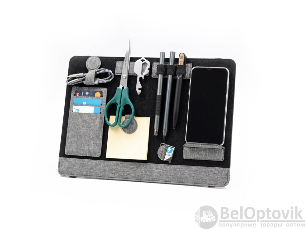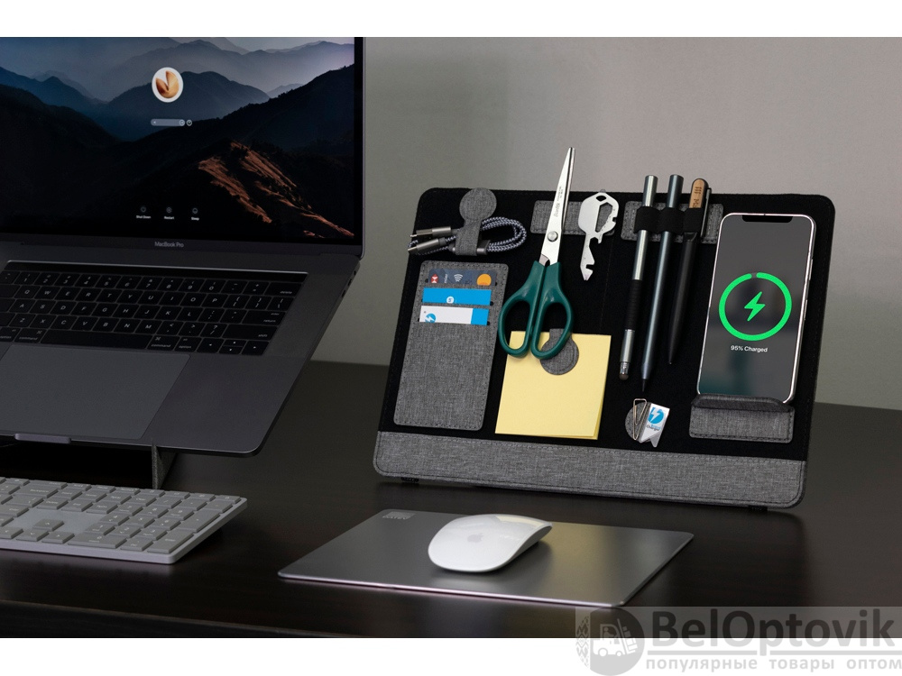 Помимо подставки для ноутбука, этот настольный органайзер оснащен подставкой для телефона с быстрой беспроводной зарядкой мощностью 15 Вт (регулируемой), планшетом для обмена, двумя магнитными док-станциями, держателем для ручек, держателем для карт, зажимом для кабеля и подставкой для телефона. Поддерживать порядок на рабочем столе еще никогда не было так просто!