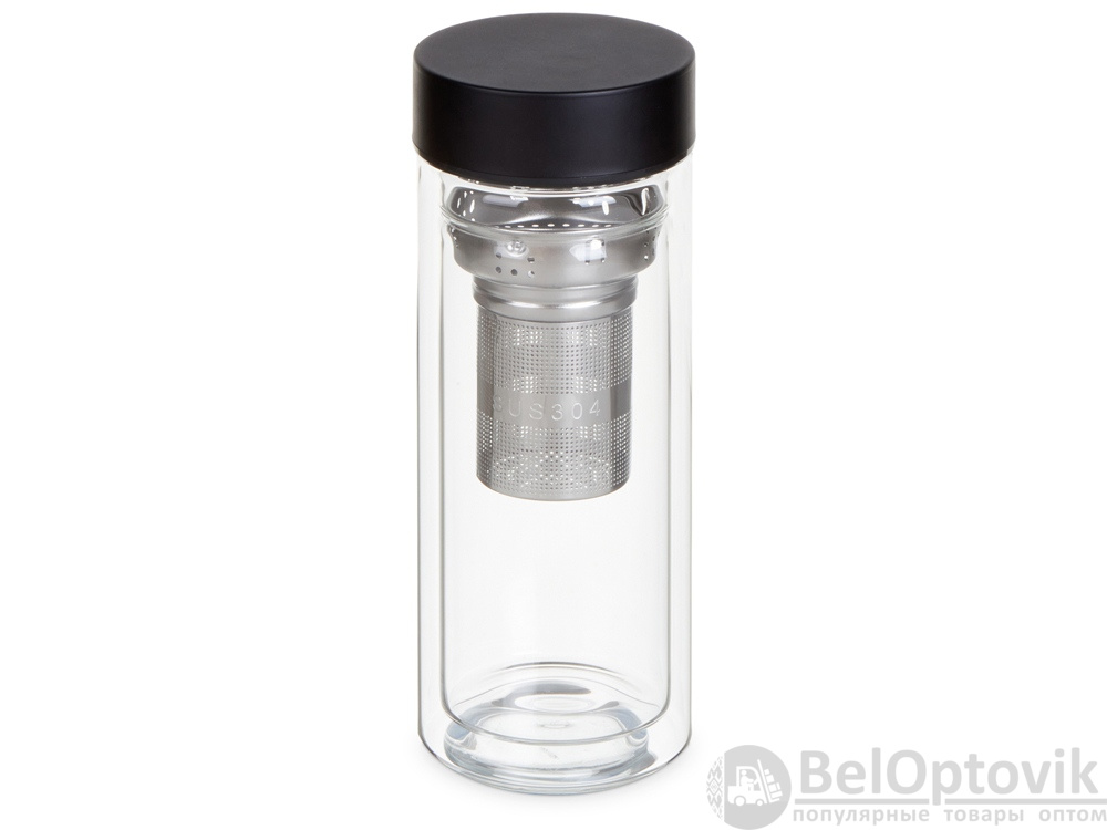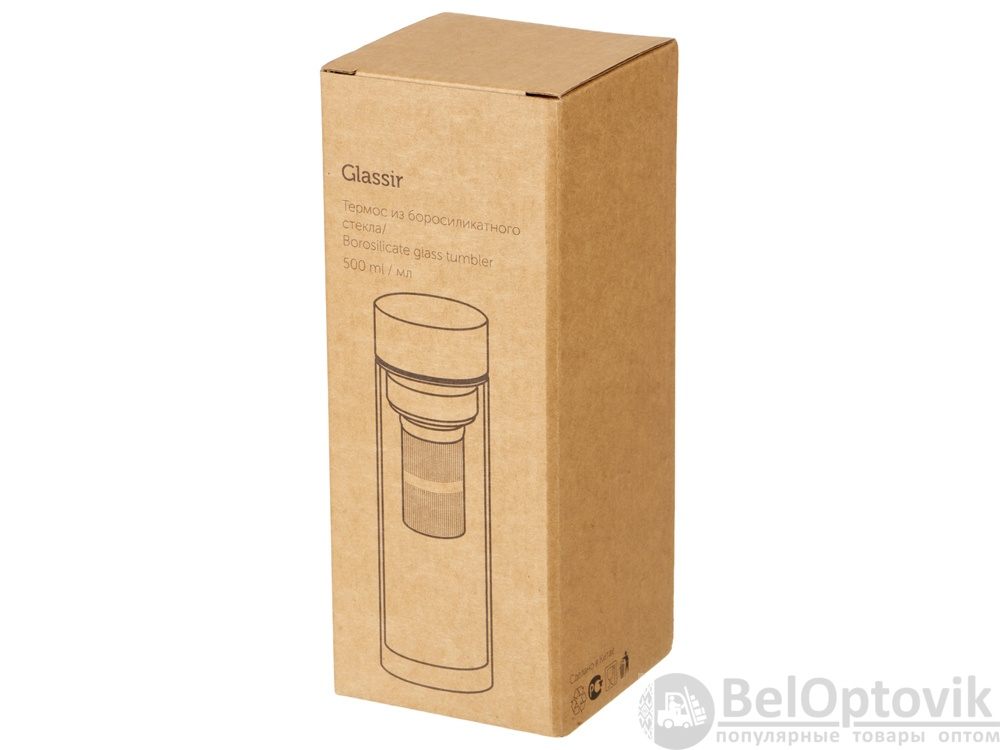 Термобутылка из жаростойкого боросиликатного стекла с углубленным составным ситечком. Позволяет сохранить температуру ваших любимых напитков течение 4-х часов. Корпус и стальная крышка идеально подходят под логотип, а общий минималистичный дизайн подчеркнет его. Объем 500мл.