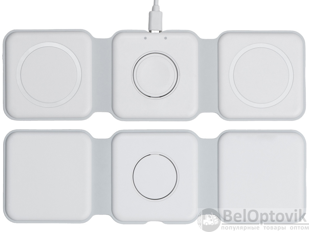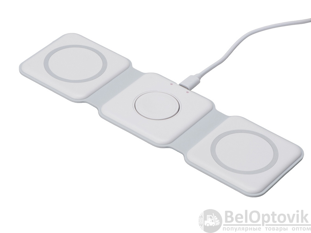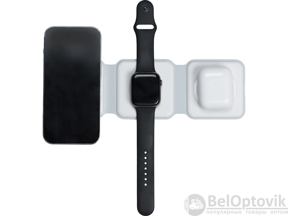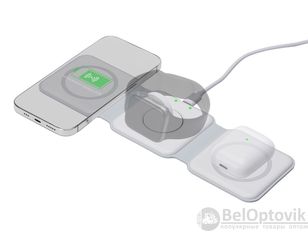 Беспроводная зарядная станция 3 в 1 — это современное решение для быстрой и удобной зарядки ваших устройств. Эта компактная и практичная модель позволяет заряжать сразу три устройства одновременно- любой смартфона и наушники с поддержкой беспроводной зарядки по протоколу Qi, и часы Apple.