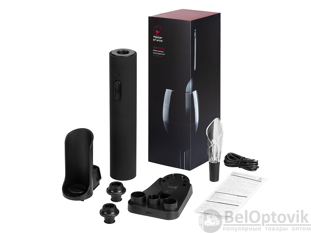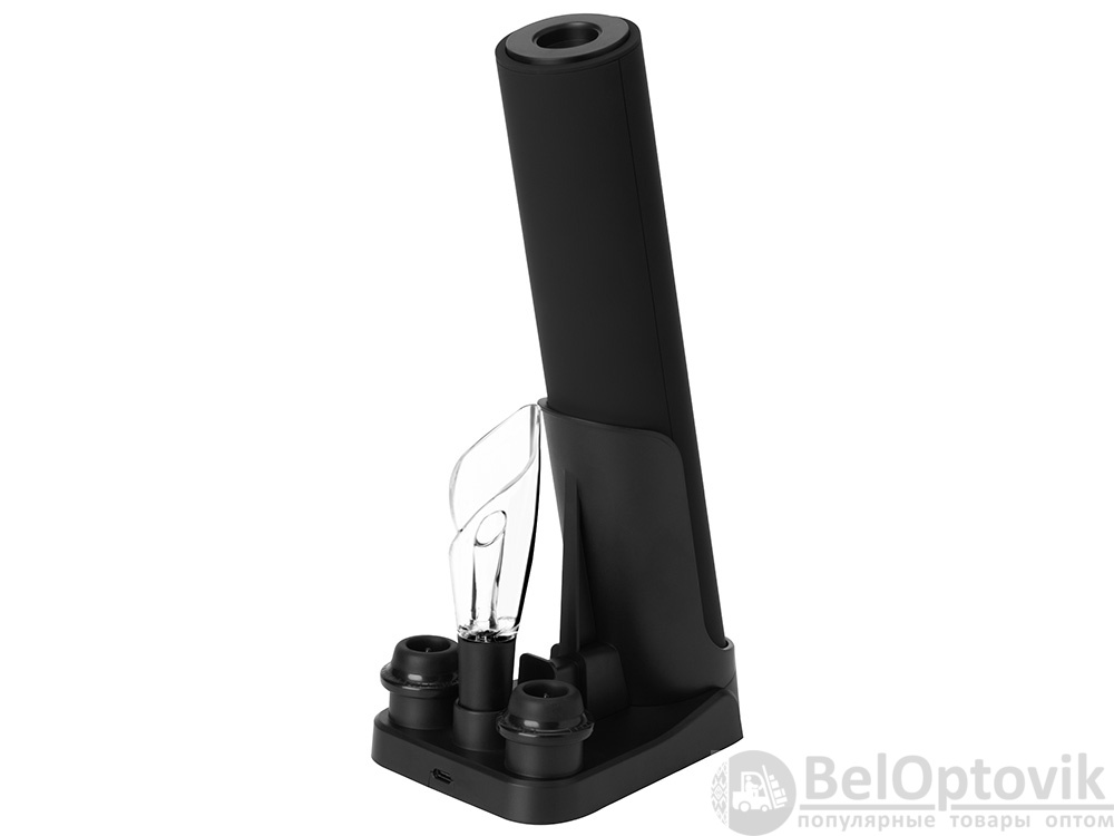 - Комплектность: электрический штопор-вакуумный насос, нож для срезания фольги, аэратор, вакуумные пробки, зарядная станция, кабель USB-C