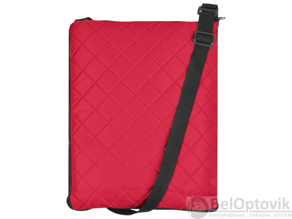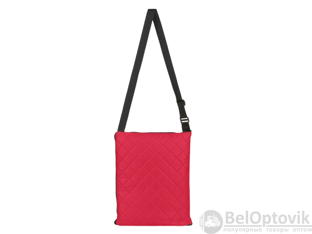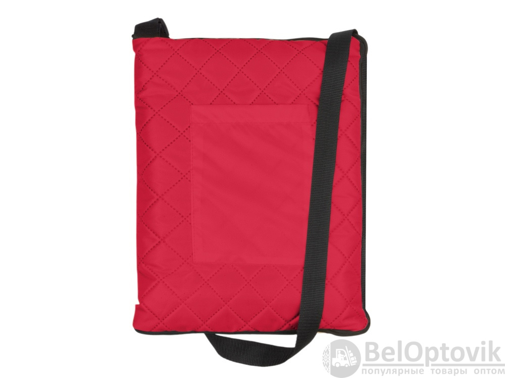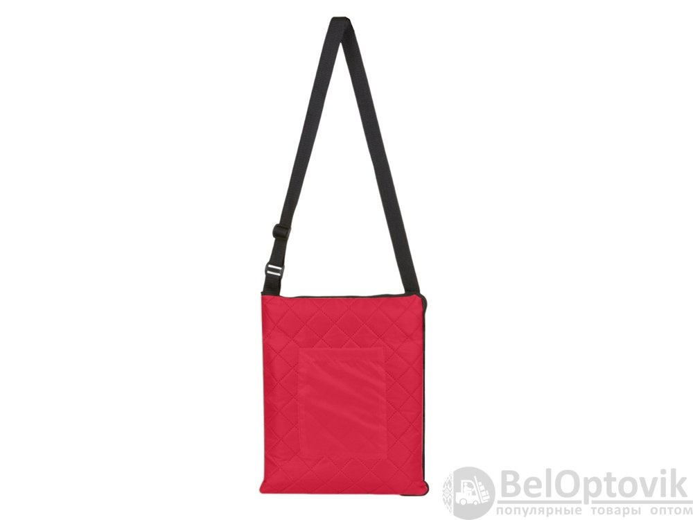 Двухсторонний плед с водоотталкивающим покрытием с одной стороны и мягким флисом с другой. Складывается в сумку на плечо и фиксируется с помощью молнии. В собранном виде имеет регулируемый по длине ремень для переноски и наружный карман для мелочей.