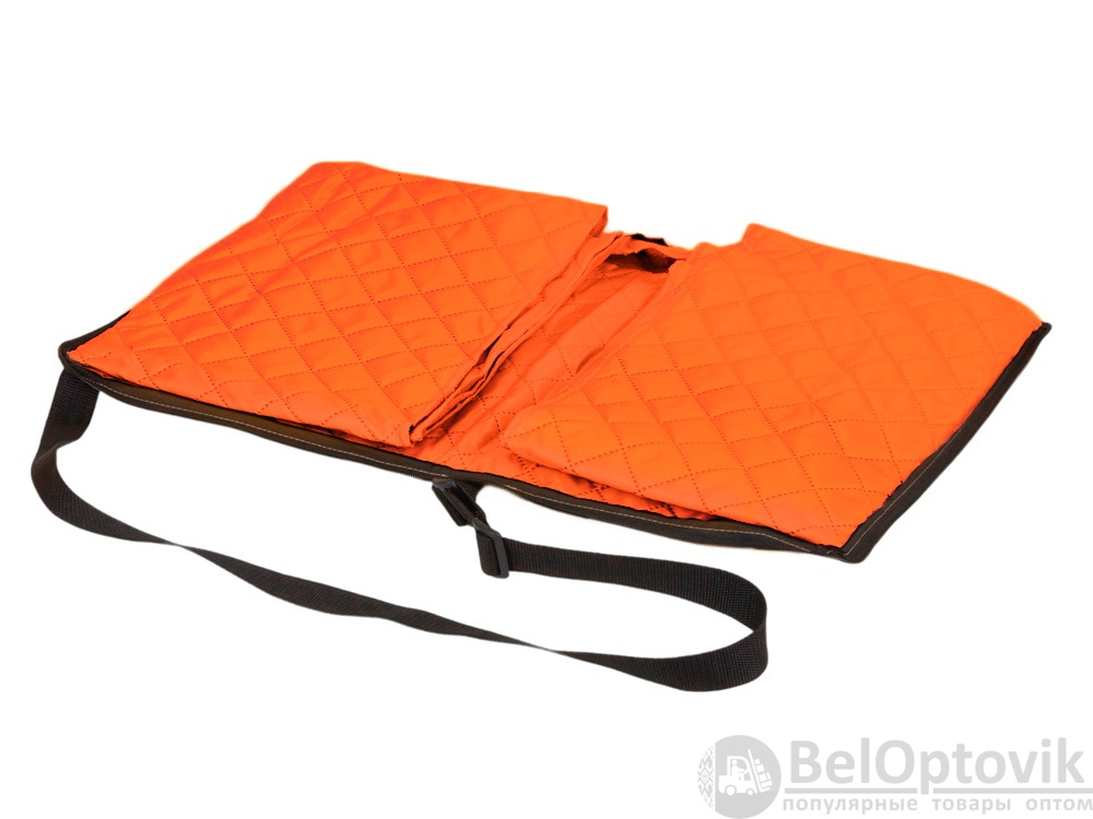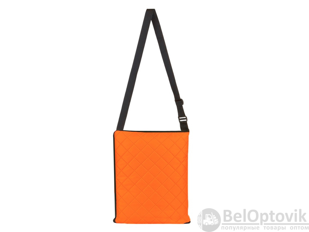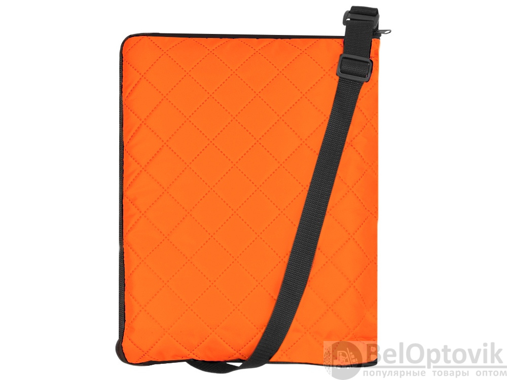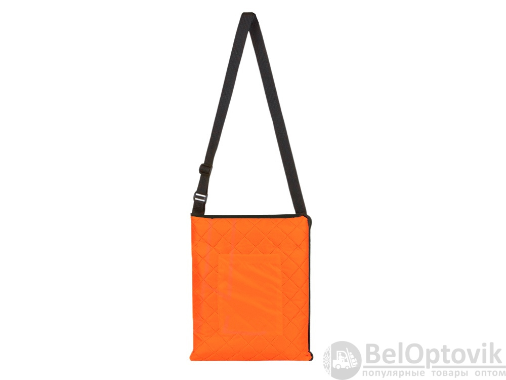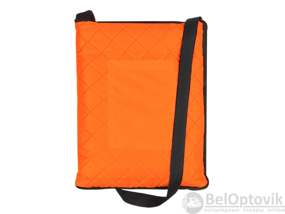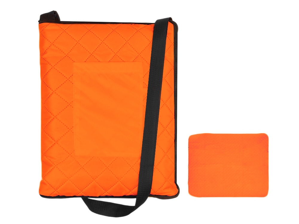 Двухсторонний плед с водоотталкивающим покрытием с одной стороны и мягким флисом с другой. Складывается в сумку на плечо и фиксируется с помощью молнии. В собранном виде имеет регулируемый по длине ремень для переноски и наружный карман для мелочей.