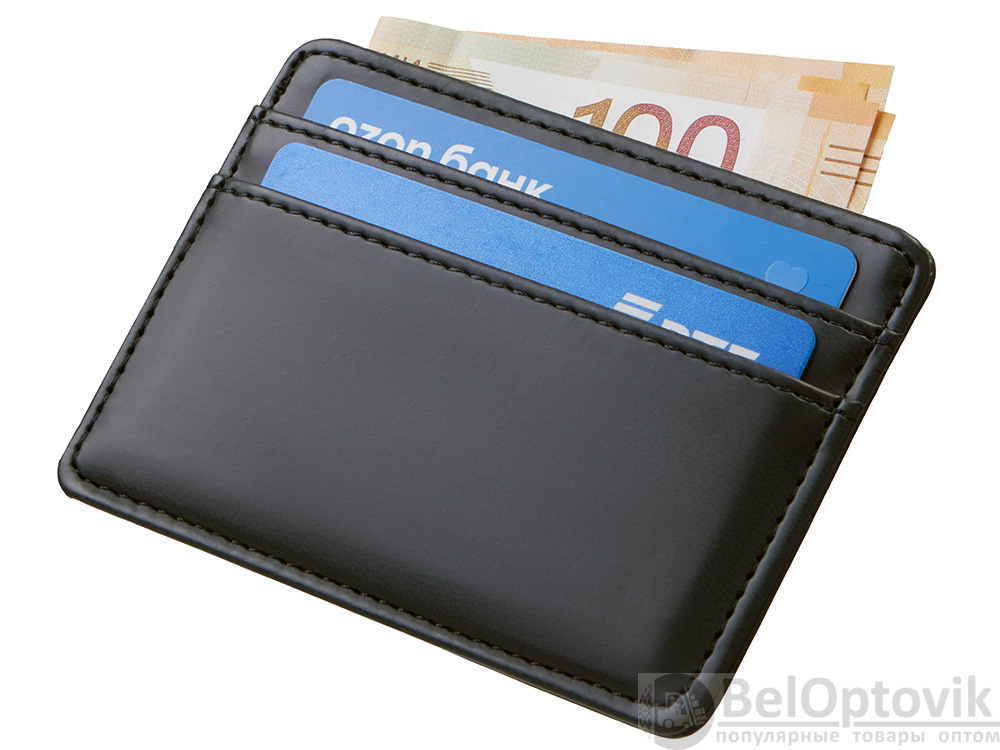 Картхолдер вмещает две карты и имеет отделение для купюр.