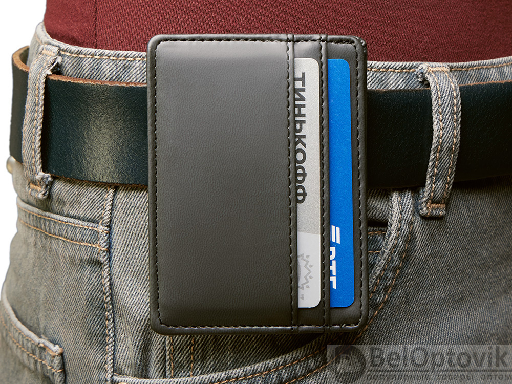Картхолдер — стильное и практичное решение для деловых людей. В отличие от классических кошельков и портмоне он занимает совсем немного места и с лёгкостью поместится в карман. Данная модель благодаря зажиму на обороте также удобно цепляется за ремень джинс или на ланъярд.
