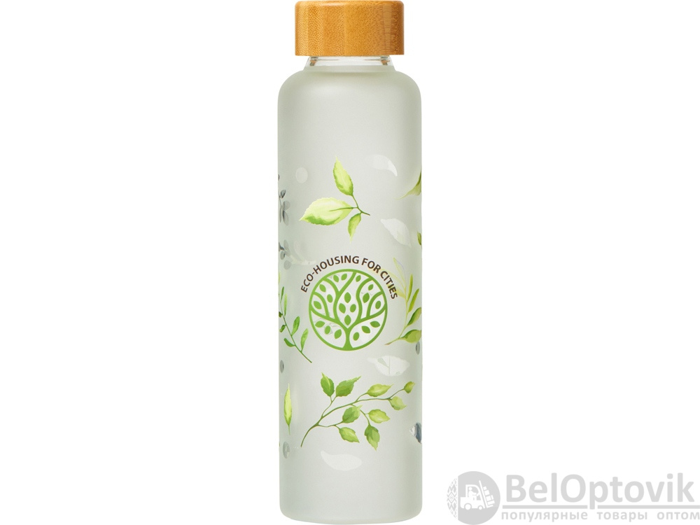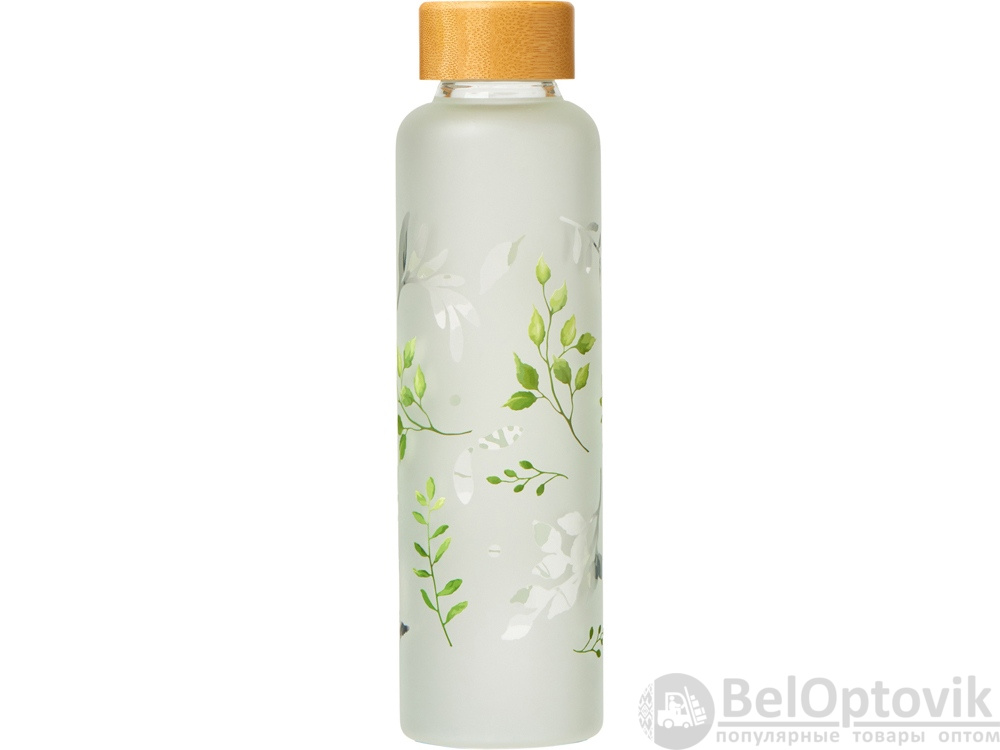 Стеклянная бутылка с бамбуковой крышкой «Foggy», 600 мл (дизайн с листьями)