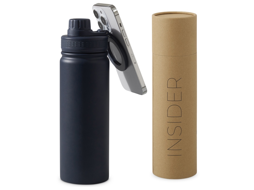 Современные технологии и стильный дизайн объединились в одной бутылке! Спортивная бутылка с магнитным держателем MagSafe поможет вам всегда держать водный баланс в норме и сделает жизнь удобнее. Благодаря магнитному держателю бутылка надежно удерживает iPhone 12 версии и новее. Магнитное крепление подходит также и для любого смартфона, т.к. в комплекте есть металлическое кольцо с клейким слоем. Кольцо наклеивается на заднюю крышку или чехол смартфона, и вы можете крепить смартфон к бутылке за секунду. Объем 600мл.