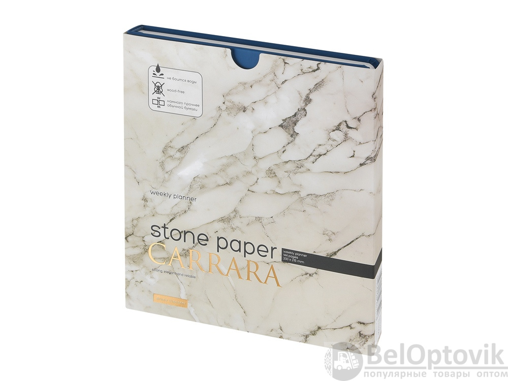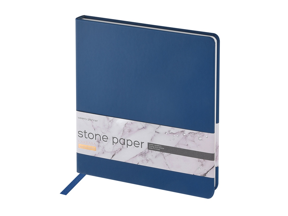 Блок произведен из каменной бумаги плотностью 144 г/кв.м, отличающейся особой гладкостью и повышенной прочностью. Она не боится воды и пролитого кофе, достаточно просто протереть сухой салфеткой.