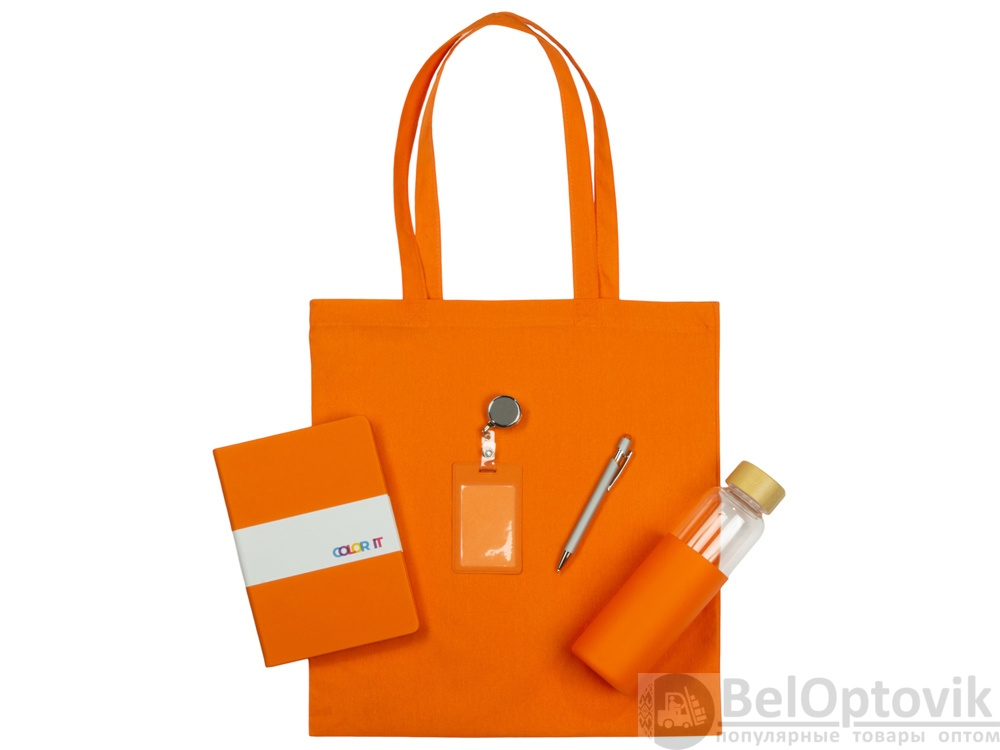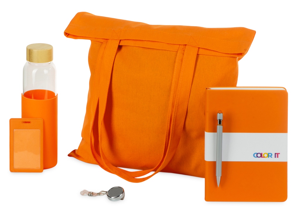 - Комплектность: шоппер, блокнот, ручка, чехол для бейджа, ретрактор, бутылка для воды