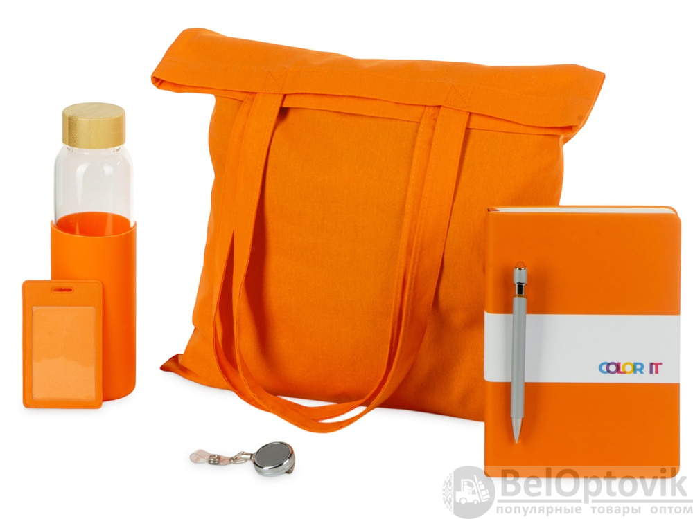 - Материал товара: сумка - 100% хлопок, блокнот - полиуретан с покрытием софт-тач, картон, ручка-стилус - металл, бутылка - стекло, силикон, бамбук, карман - искусственная кожа, ретрактор - металл, искусственная кожа.