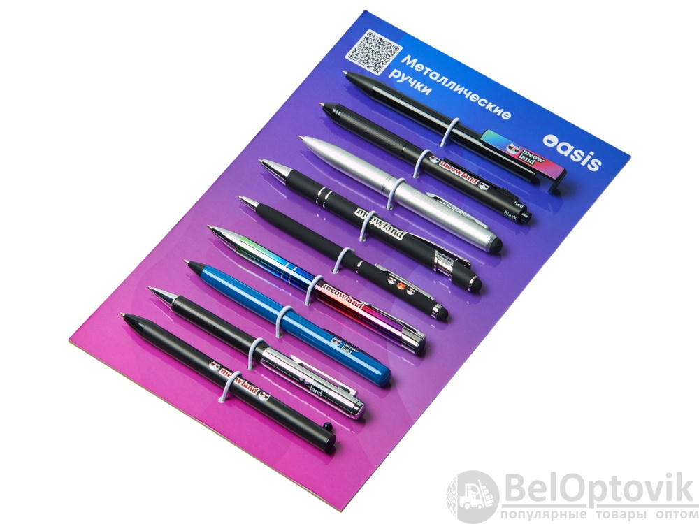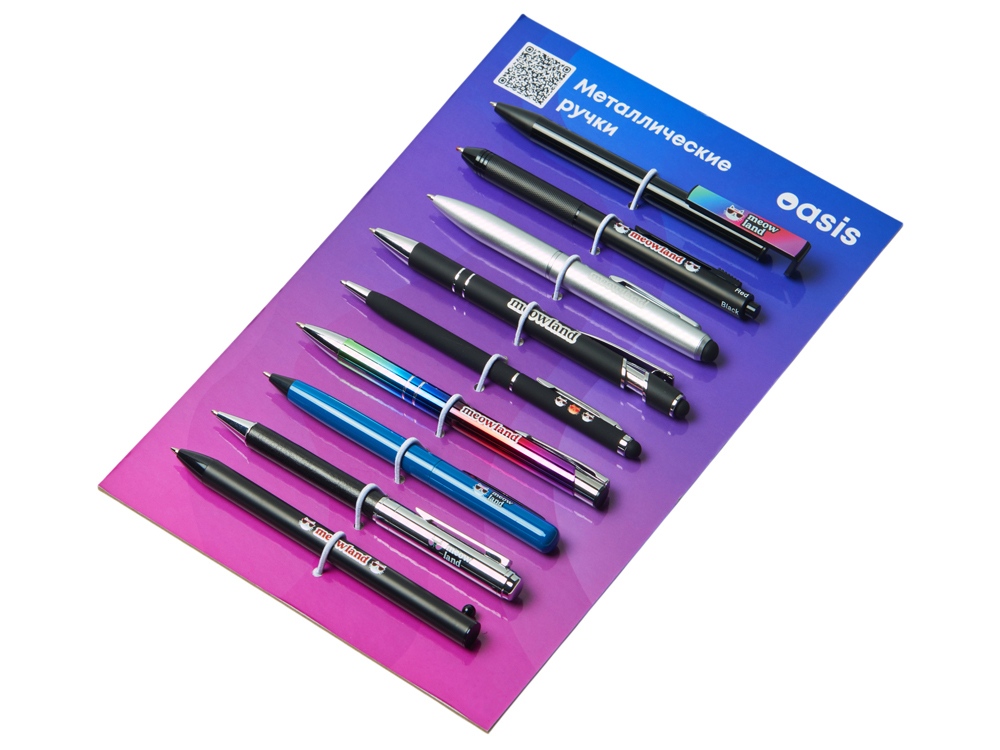 Промо-сет ручек — ваш готовый демонстрационный комплект, включающий 9 моделей металлических ручек с примерами нанесения: гравировка, тампопечать и УФ-печать.