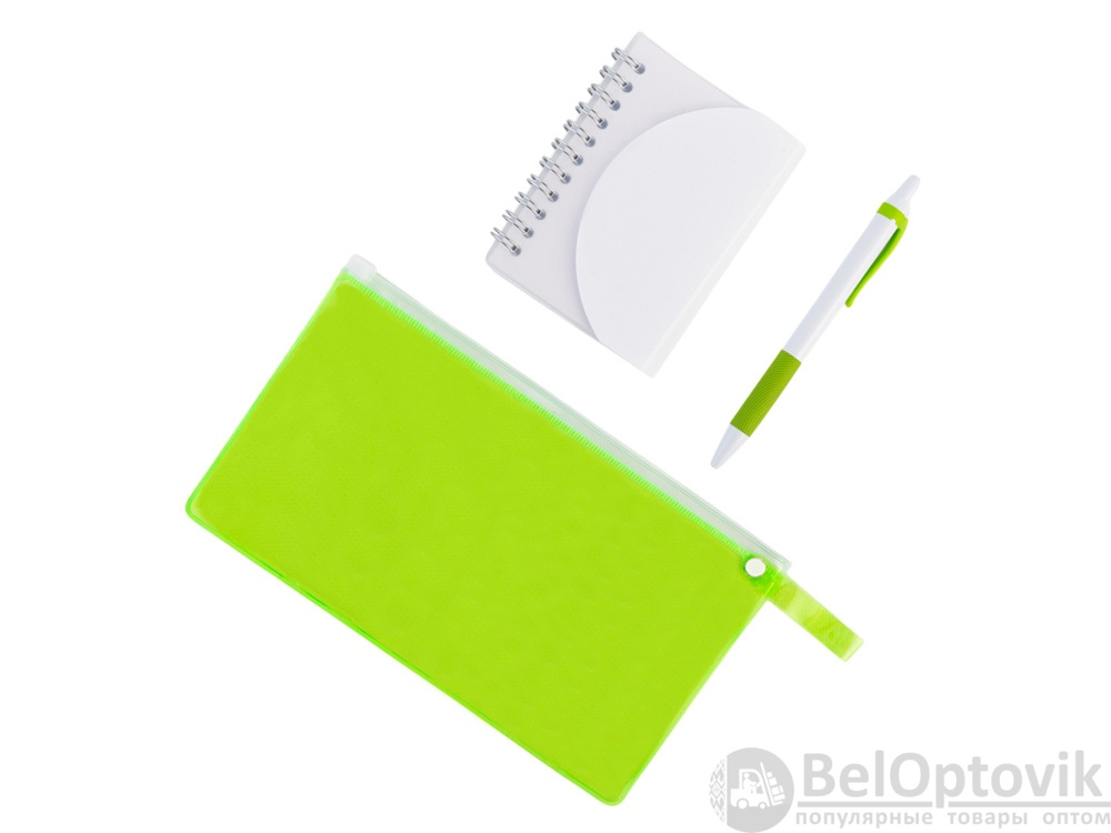 - Материал товара: пенал - ПВХ, блокнот - полипропилен, ручка - пластик