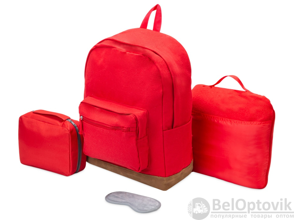 Отличное предложение для тех, кто собрался в путешествие! Рюкзак вмещает до 8 кг и прекрасно подойдет для ручной клади. Пледом можно укрыться в полете или использовать как подушку в пути или в случае длительного ожидания рейса. А чтобы сон был комфортным, воспользуйтесь маской на глаза, которую можно хранить вместе другими необходимыми для путешествия мелочами в удобном несессере. Такой набор обеспечит вам комфорт в пути и удобство в поездке на любом виде транспорта!