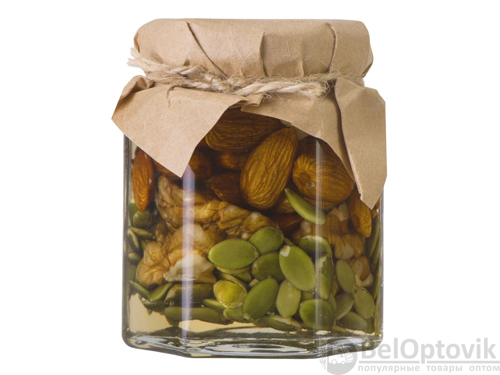 - Состав: мёд натуральный, грецкий орех, миндаль, кешью, тыквенные семечки