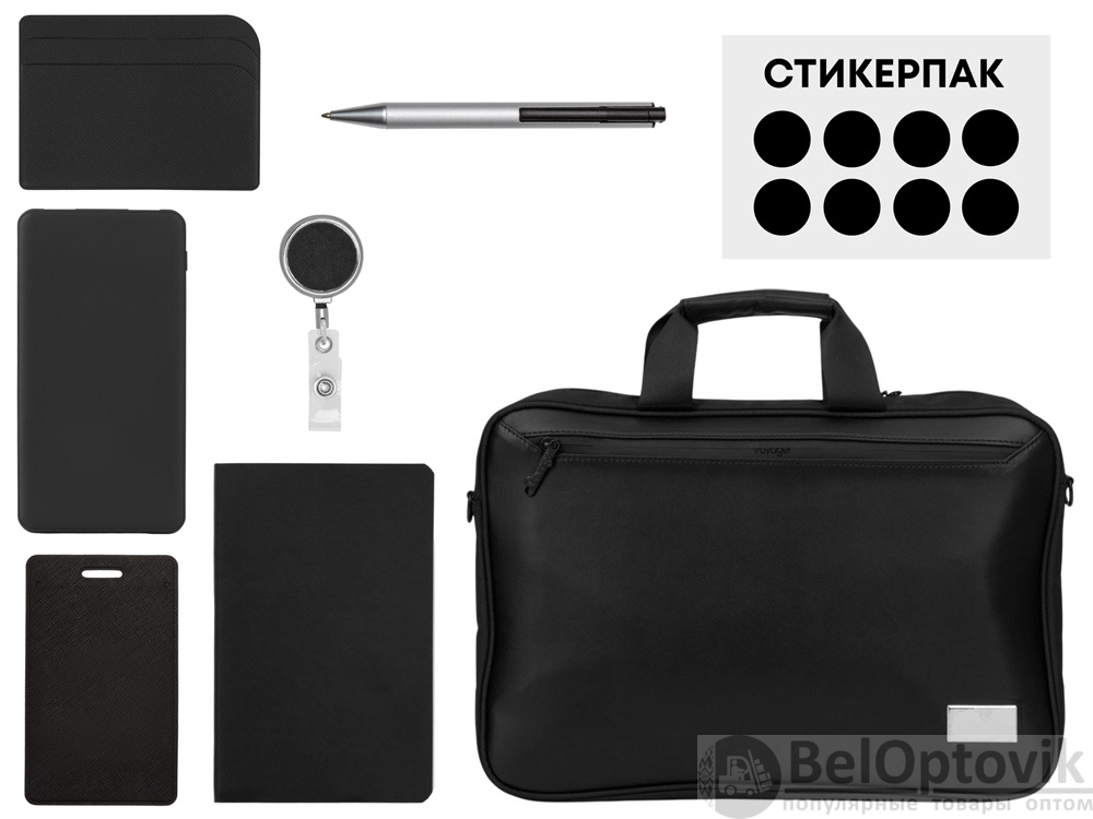 - Комплектность: сумка для ноутбука, повербанк 5000 mAh, блокнот А6, ручка шариковая, картхолдер, чехол для пропуска, ретрактор, сет стикеров