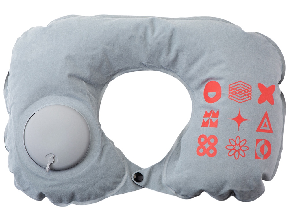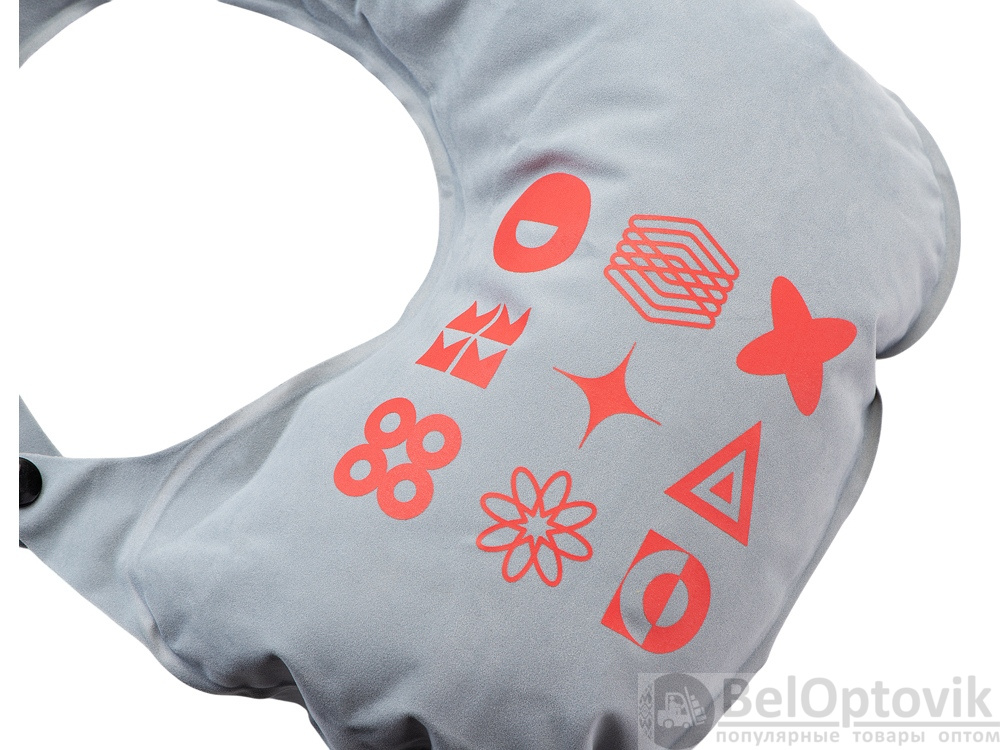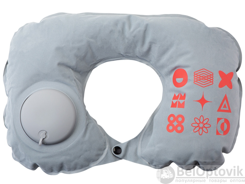 На обратной стороне от насоса-помпы находится клапан для сдувания воздуха из подушки. Двухуровневая фиксация кнопками позволит выбрать наиболее комфортное положение на шее. В комплекте идет чехол на завязках для хранения и удобной транспортировки.