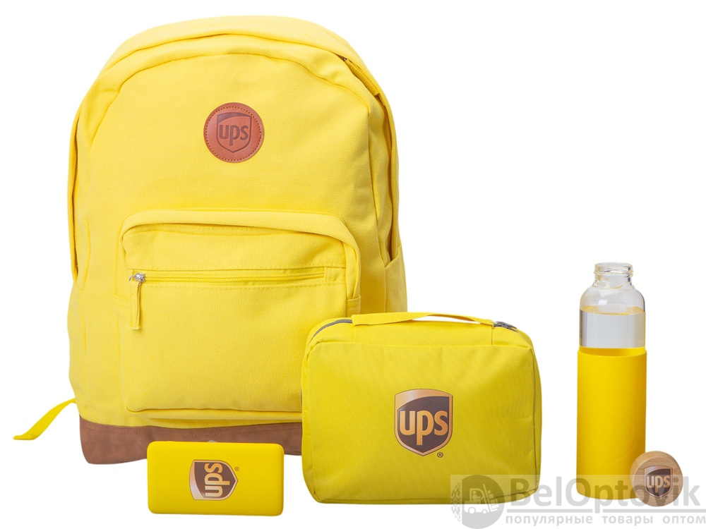 - Материал товара: несессер- полиэстер, бутылка- стекло, силикон, бамбук, рюкзак- хлопок, полиэстер, аккумулятор- пластик с покрытием soft-touch