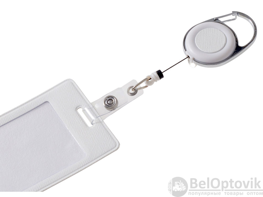 Прочный чехол для пропуска из экокожи с ретрактором. Ретрактор можно удобно закрепить на одежде, за ремень или карман брюк, например. При этом, когда пропуск нужно приложить к электронному считывающему устройству, достаточно просто слегка потянуть и будет получена необходимая длина.