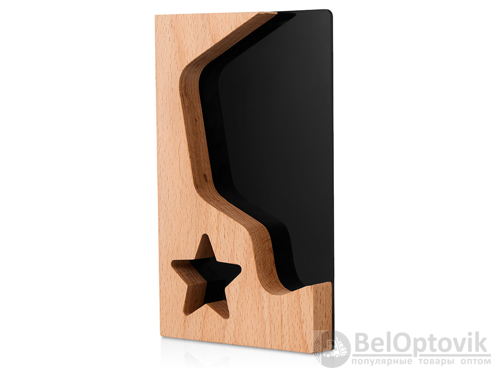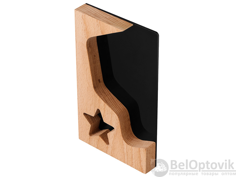 Красивая и современная награда для главных звезд любой компании. Черный акрил добавляет контраста рамке из бука, логотип или наградную надпись можно выгравировать на деревянной части или сделать уникальный дизайн, благодаря полной запечатке акрила методом УФ-печати.