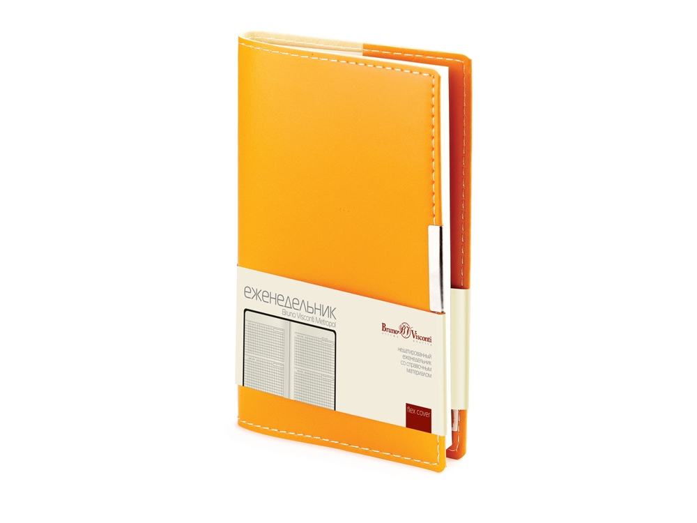 Удобный практичный недатированный еженедельник в мягкой обложке из прочного переплетного материала. Контрастная прострочка белыми нитками по периметру привлекает внимание к изящной форме обложки с закругленными уголками. Обложка украшена металлическим шильдиком. Линовка блока - клетка, с указанием дней недели. Карманный формат этого еженедельника позволяет эффективно вести записи на выездных совещаниях, переговорах и встречах. Готов к персонализации.