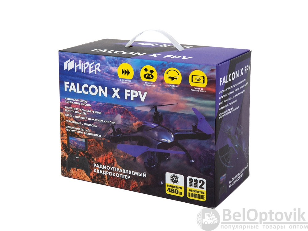 Квадрокоптер HIPER FALCON X FPV – имеет корпус фиолетово-черного цвета, подвесную FPV видеокамеру 480P, квадрокоптер идеально подходит начинающим пилотам для совершенствования навыков управления. Для стабилизации в воздухе квадрокоптер оснащён гироскопом, а встроенный барометрический датчик помогает удерживать текущую высоту.