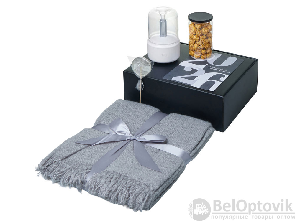 - Материал товара: плед - 100% акрил; увлажнитель - АБС пластик, поликарбонат; открытка - бумага; мешок - нетканый материал (спанбонд)