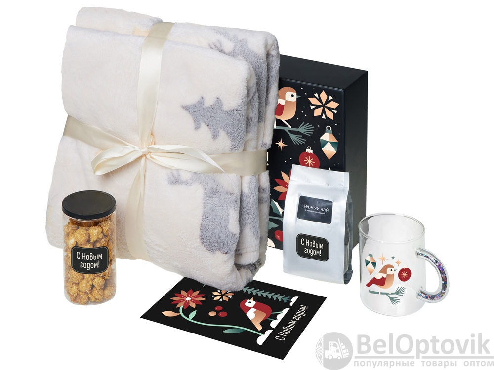 - Материал товара: плед - флис из 100% полиэстера; кружка - стекло; мешок - нетканый материал (спанбонд)