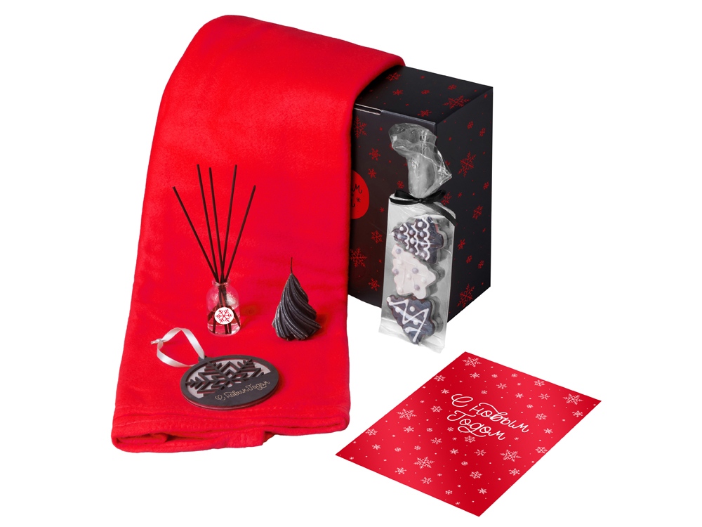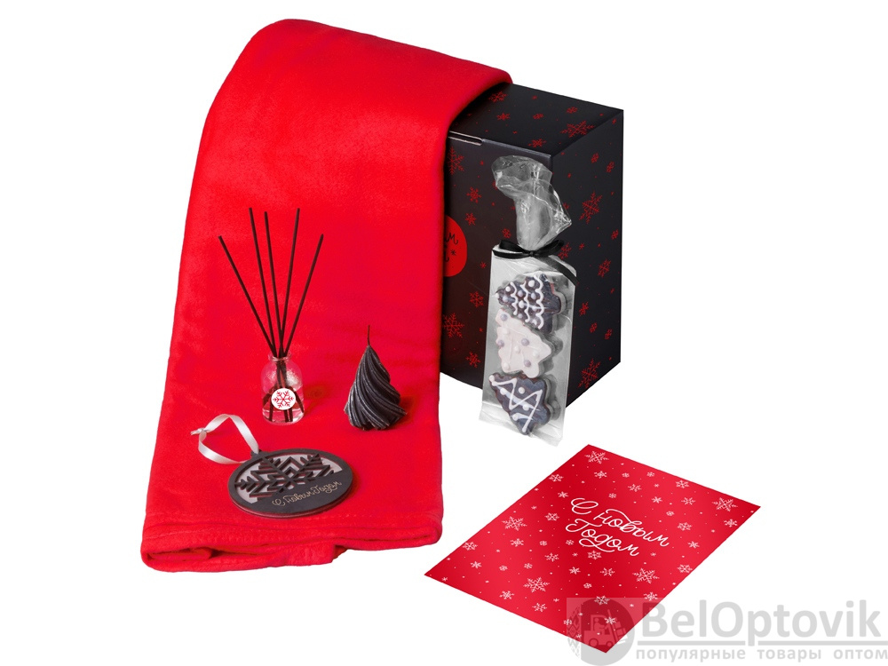 - Материал товара: плед - флис 100% полиэстер; подвеска - березовая фанера; открытка - бумага; мешок - нетканый материал (спанбонд)