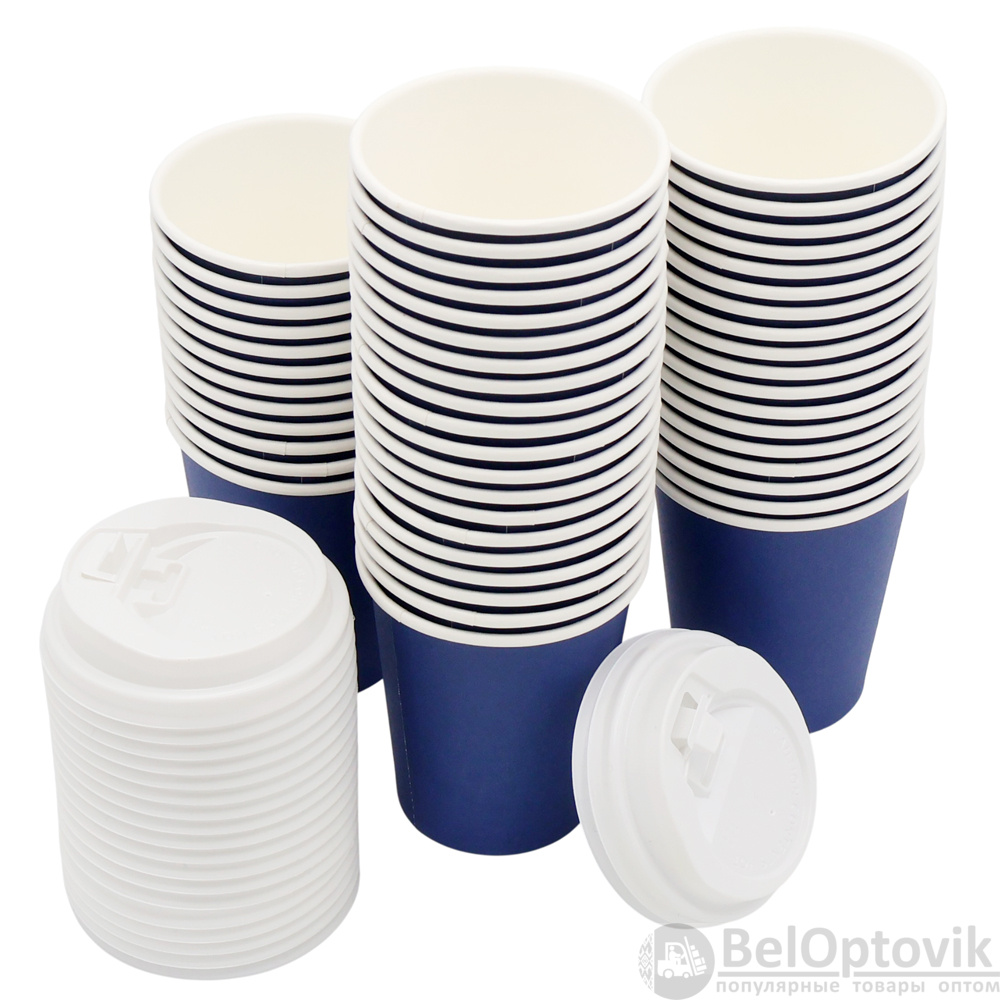 Набор бумажных стаканов с крышкой 8 унций (240 мл), 50 шт