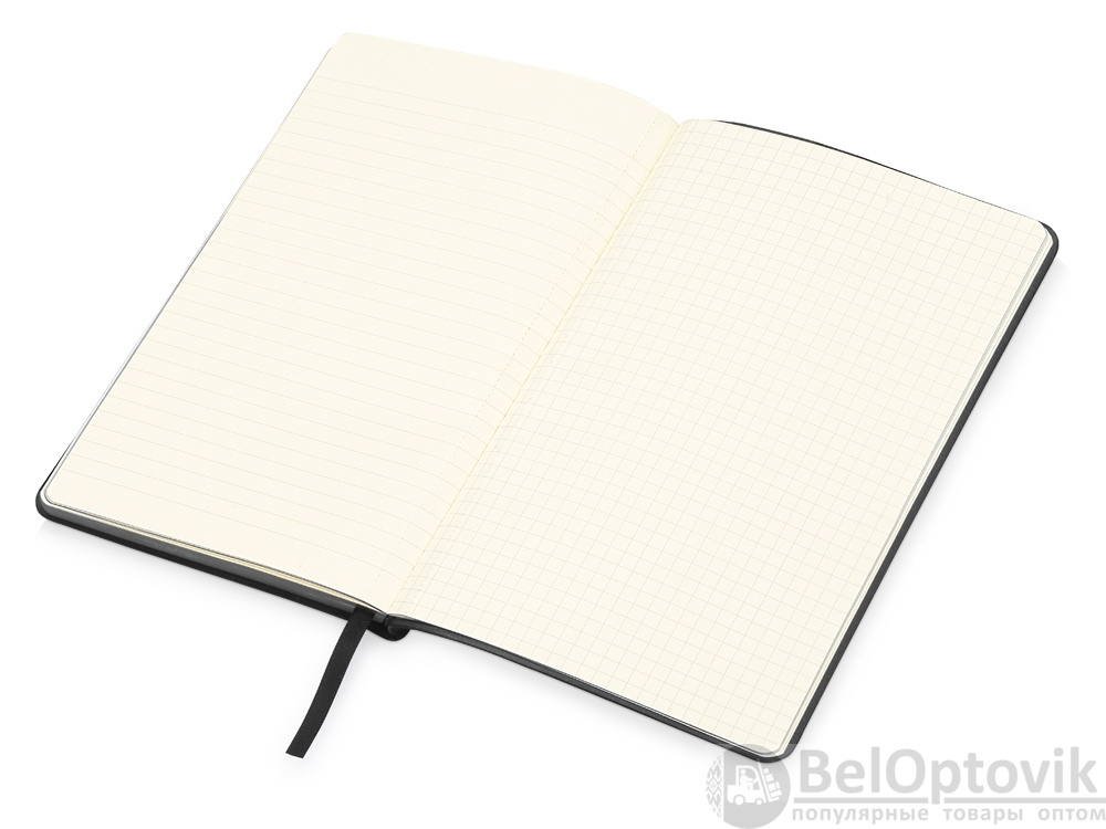 В блокноте 160 линованных перфорированных страниц кремового цвета с плотностью 80 г/м2. Последние 8 страниц представлены следующим образом: 2 страницы в линейку, в клетку, в точку, пустые и последняя страница содержит линейку для измерений на 18 см.