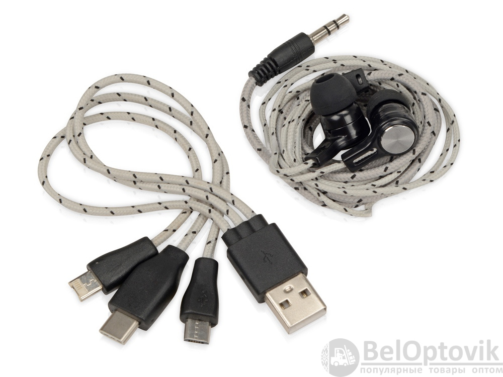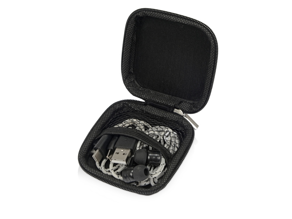 Набор «In motion» — оптимальный бизнес-подарок для подвижных, активных людей. В набор входят проводные наушники с минималистичным дизайном и зарядный кабель 3 в 1 с разъемами micro USB, Lightning (для устройств Apple) и USB-C. Яркий цвет кабеля не позволит ему затеряться среди других вещей. Набор поставляется в компактном чехле на молнии.