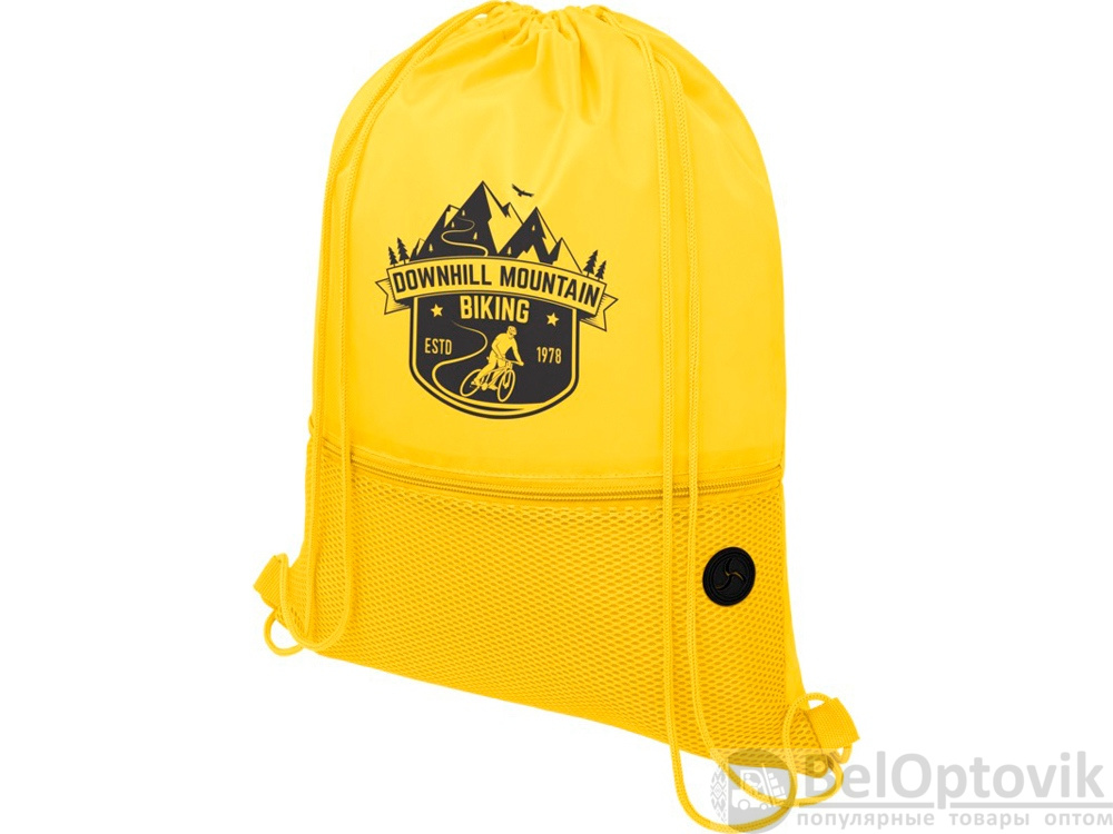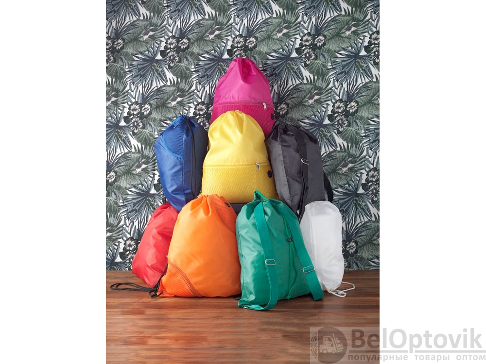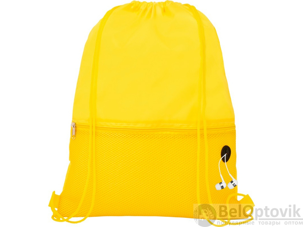 Рюкзак со шнурком и главным отделением на шнуровке в цвет изделия. Имеет один передний сетчатый карман на молнии и порт для наушников. Прочность до 5 кг.