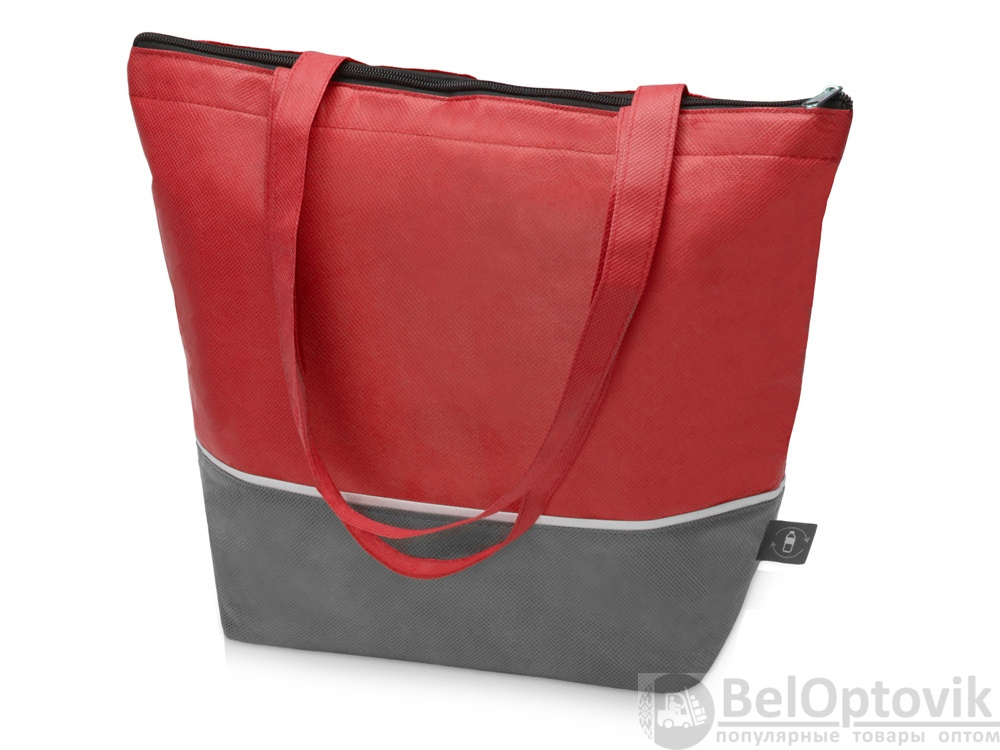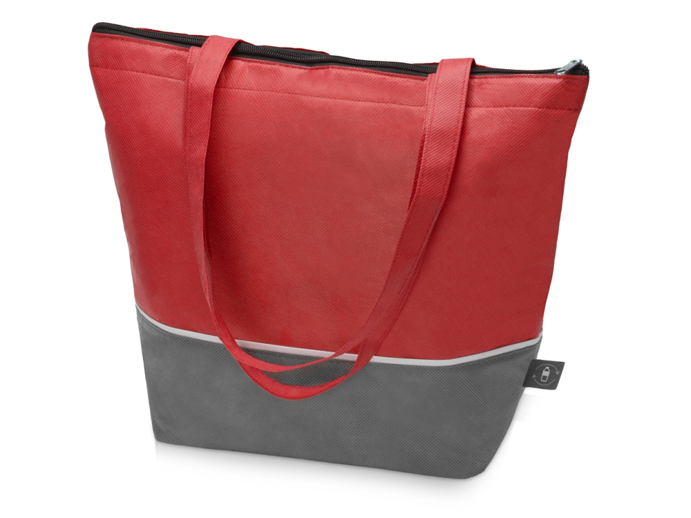 Вместительная сумка-холодильник из переработанного пластика. Удобные длинные ручки для ношения на плече. Застегивается на молнию.