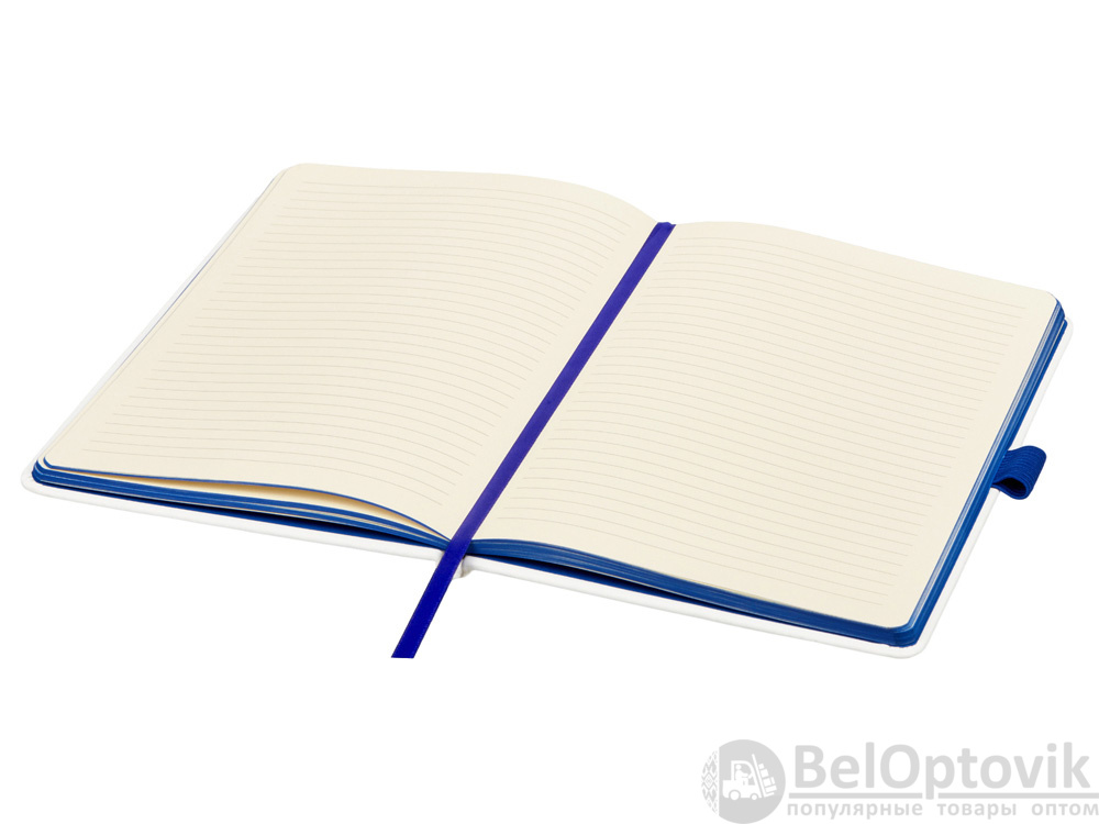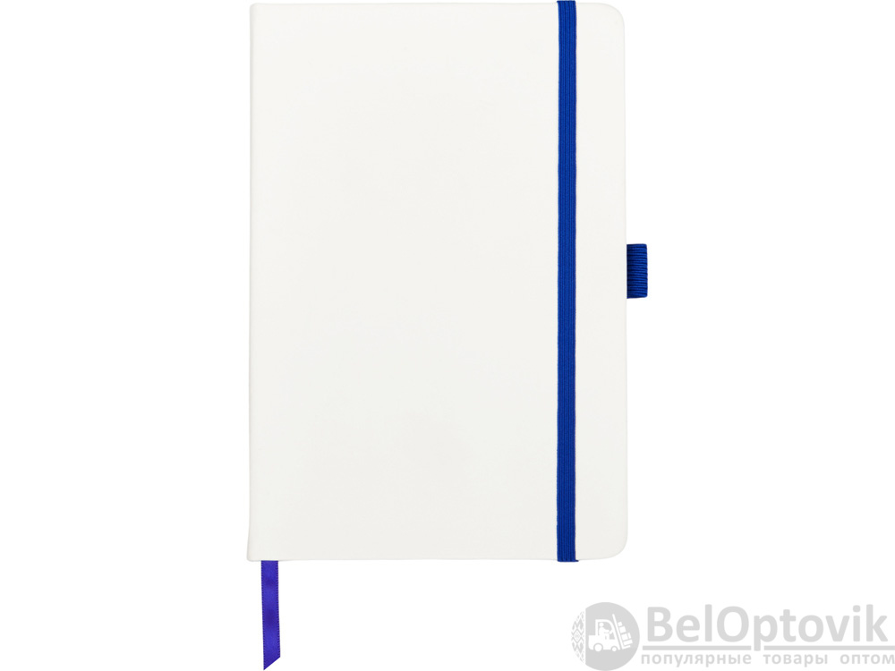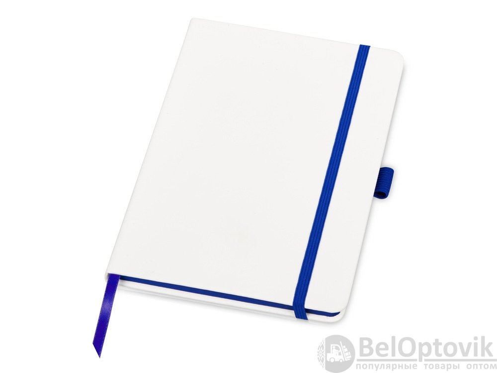 Блокнот в твердой обложке с закругленными углами белого цвета. Ляссе, резинка и срез яркого контрастного цвета делают его очень стильным и функциональным бизнес-аксессуаром.