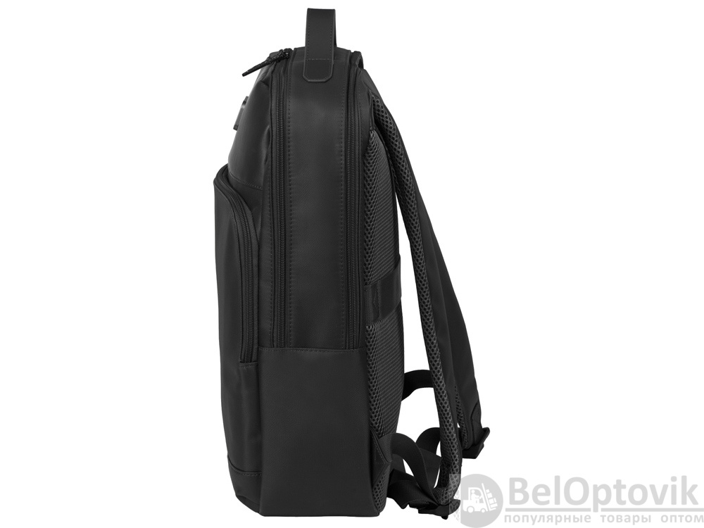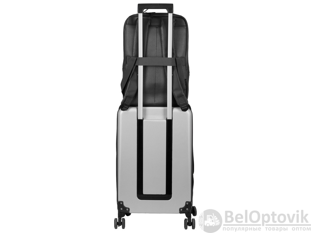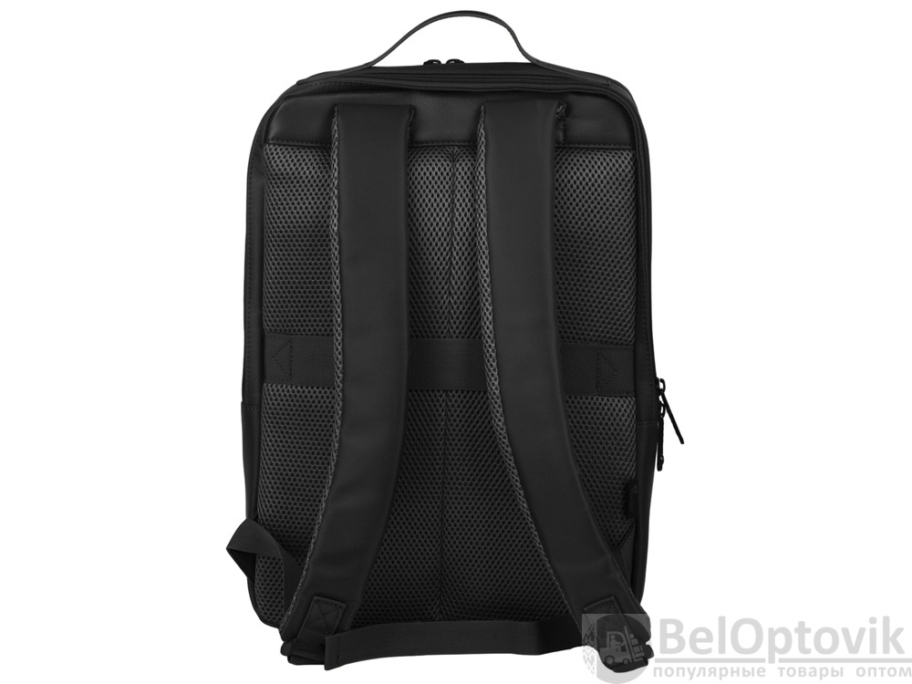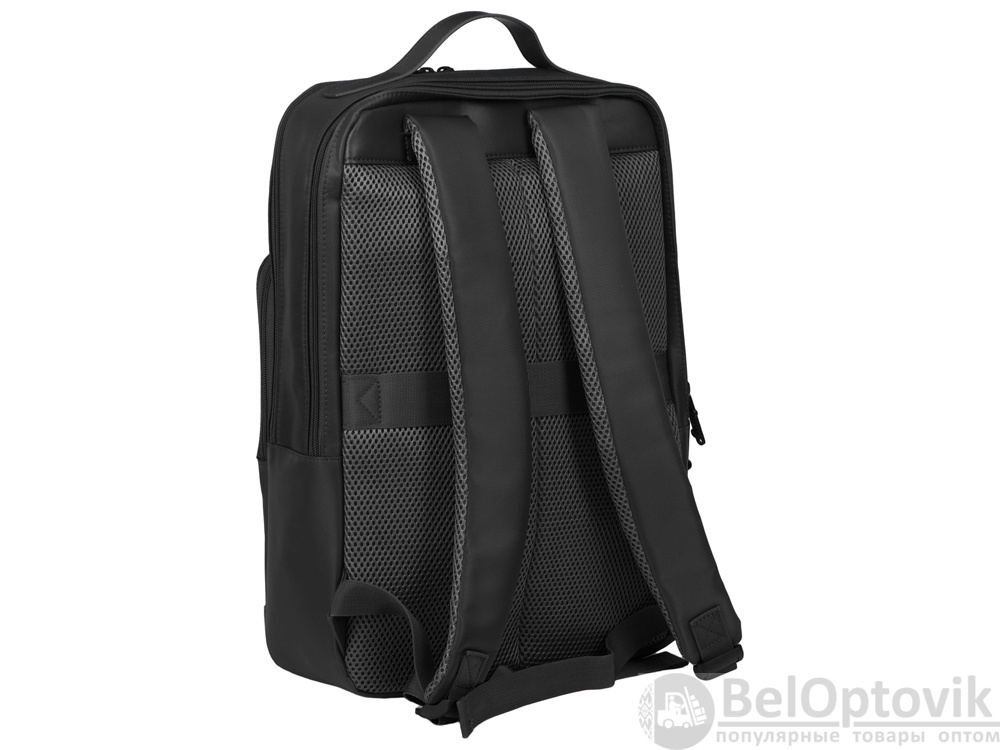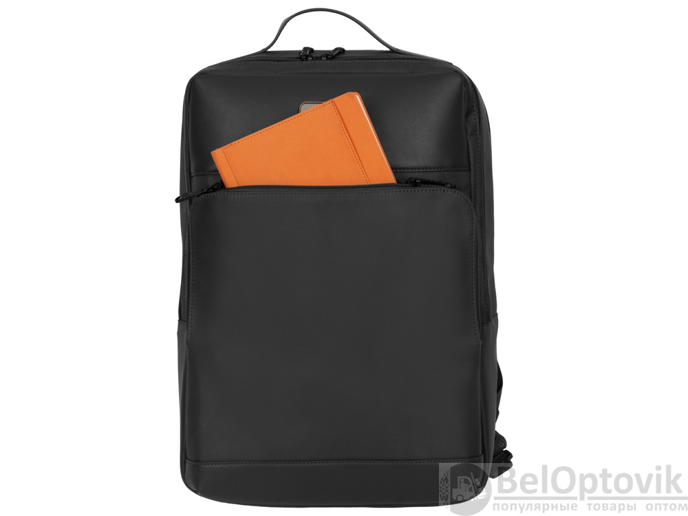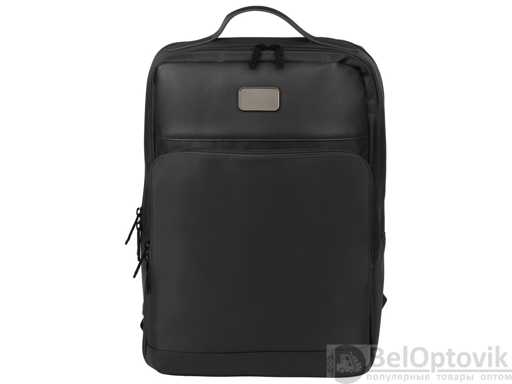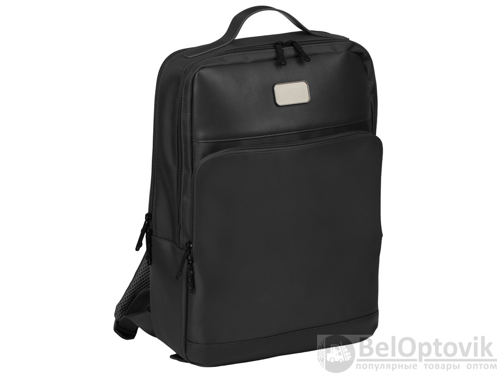 Бизнес-рюкзак из плотной ткани, хорошо держащий форму, имеет строгий и стильный дизайн. Внутри 2 отделения - для ноутбука и для одежды с органайзером и внутренним карманом на молнии. Снаружи расположено большое отделение на молнии. Рюкзак удобен для поездок, при этом компактен и оснащен ремнем для крепления к чемодану. В комплекте нетканый мешок для хранения и съемный металлический шильд для нанесения вашего логотипа.