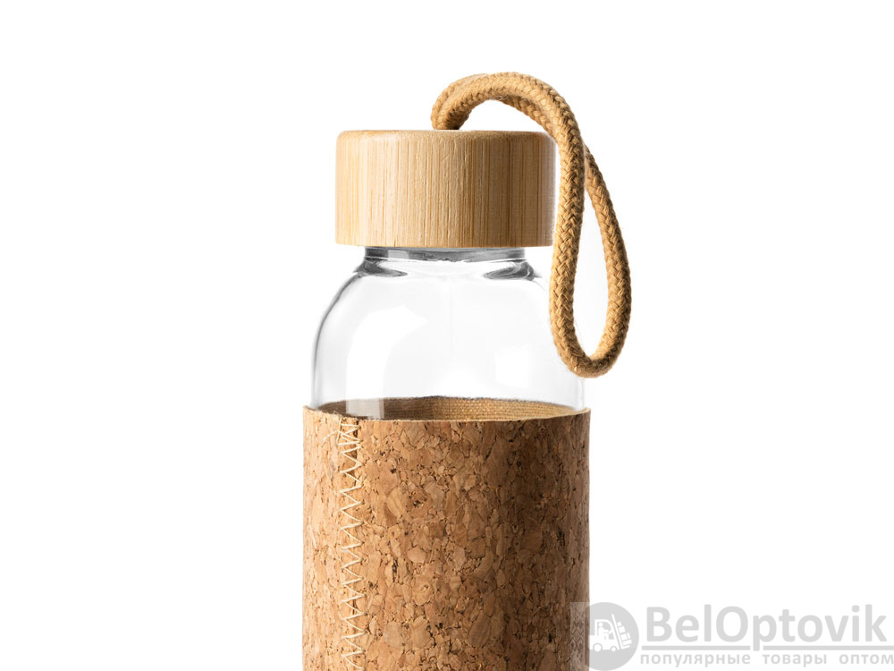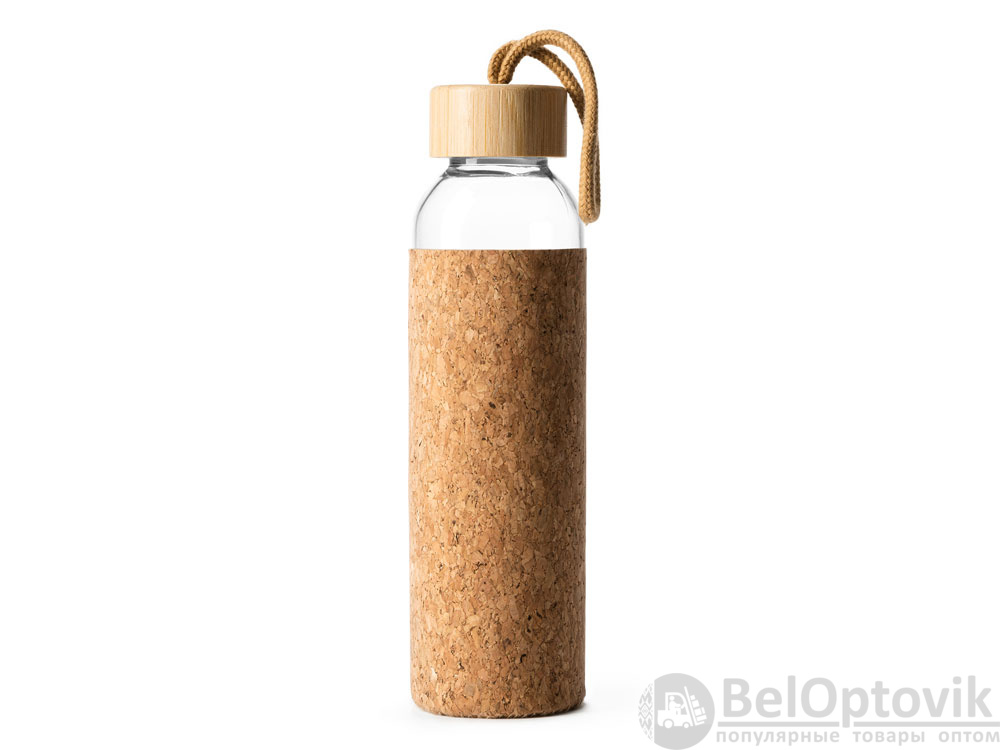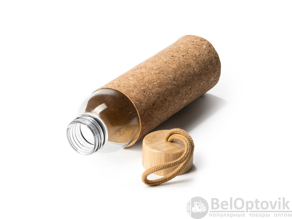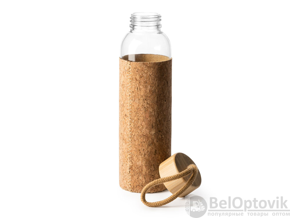 Стеклянная бутылка в чехле из натуральной пробки. Бамбуковая крышка с практичной ручкой для переноски, поэтому вы можете брать ее с собой куда угодно. Емкость 500 мл.