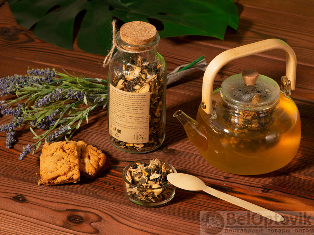 Чай с соком - натуральный, вкусный и полезный для здоровья напиток. Это не просто чай с фруктовыми кусочками и добавками, а чайные листья, «наполненные» соком свежайших плодов. Для изготовления 2 тонн такого чая используется 20 тонн свежих фруктов. По технологии чайные листья смешиваются с нарезанными кусочками фруктов и пропитываются выделяющимся соком. После этого вобравшие сок листья чая высушиваются и смешиваются с сублимированными ягодами или фруктами, образуя уникальный напиток.