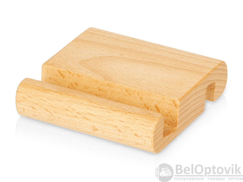 Подставка для смартфона изготовлена из дерева бука, что обеспечивает прочность и экологичность изделия. Она имеет две разные выемки, которые позволяют установить смартфон различных размеров как с чехлом, так и без него. Материал безопасен и подходит для любых поверхностей. Легкий уход за подставкой также делает ее практичной и удобной в использовании.