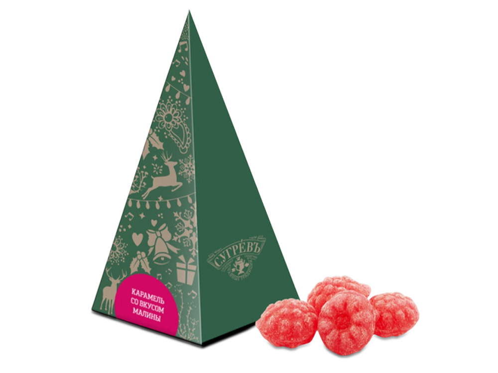 Картонная ёлка с наполнением из леденцов со вкусом малины — это отличный бюджетный вариант дополнения новогоднего подарка!