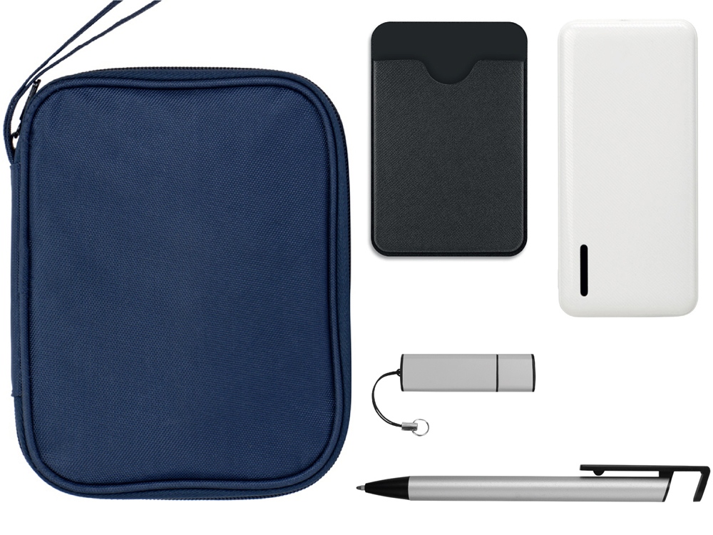 - Материал товара: органайзер - полиэстер, чехол картхолдер - экокожа (ПУ), ручка - металл, пластик, флеш-карта - металл, аккумулятор - пластик