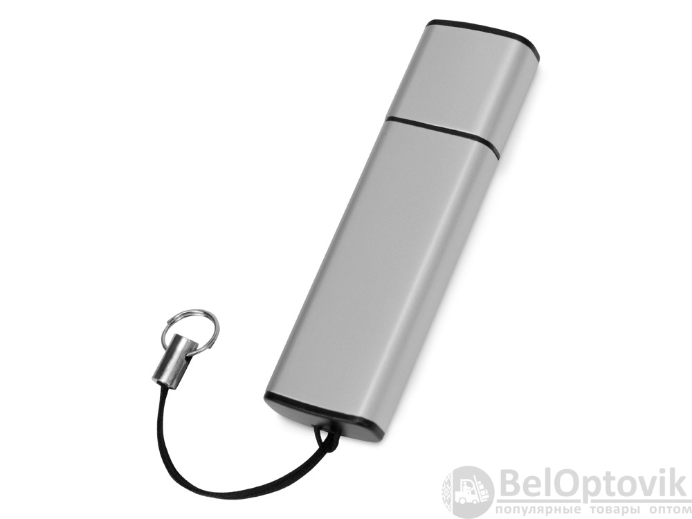 Металлическая флешка в окрашенном корпусе с колпачком имеет крепление для переноски.