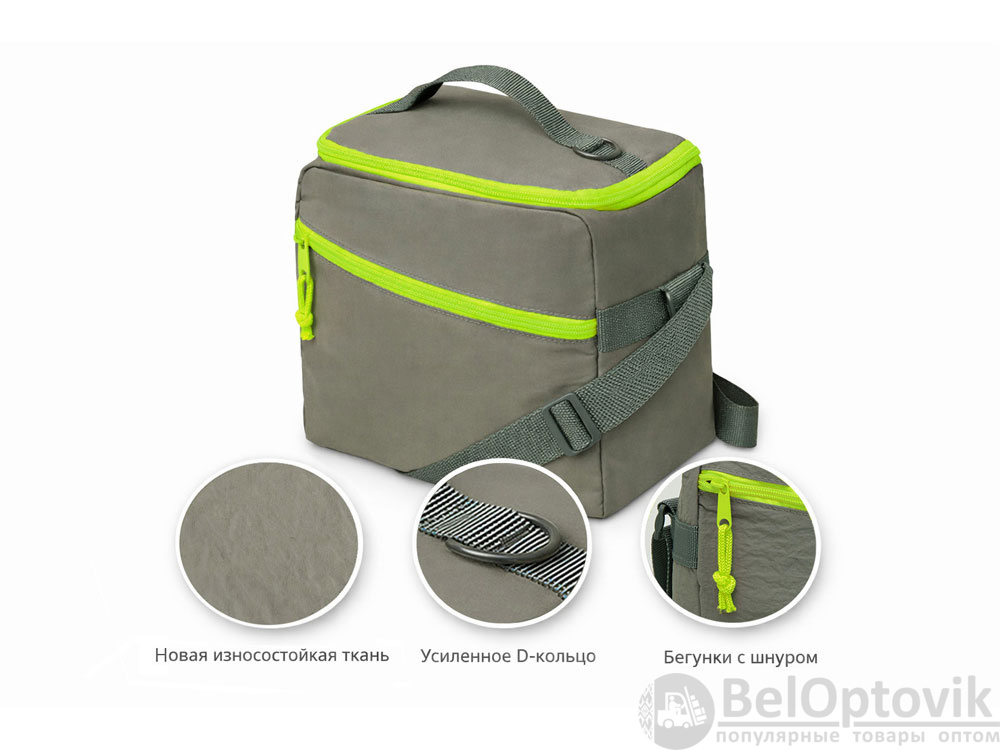 Сумка-холодильник Neo Classic с функцией компактного хранения, регулируемым по длине плечевым ремнем и фронтальным дополнительным карманом. Отлично сохраняет свежесть и вкус продуктов в течение нескольких часов. При изготовлении сумки использован высококачественный внутренний слой из водонепроницаемого материала PEVA. Мы заменили материал верха на более современный, водостойкий и долговечный, добавили д-кольцо для ремувки с вашим логотипом, заменили бегунки на более удобные.