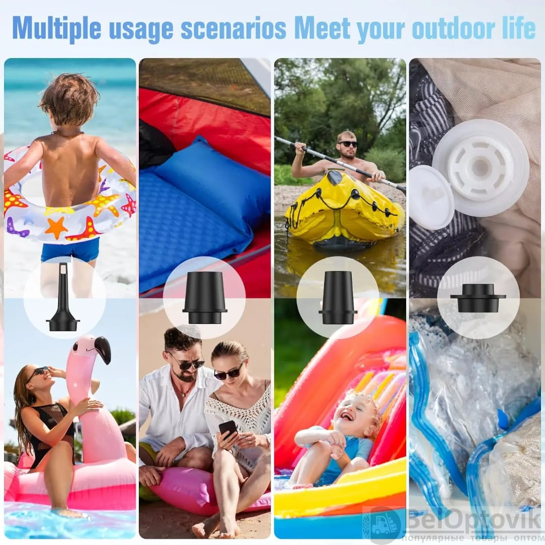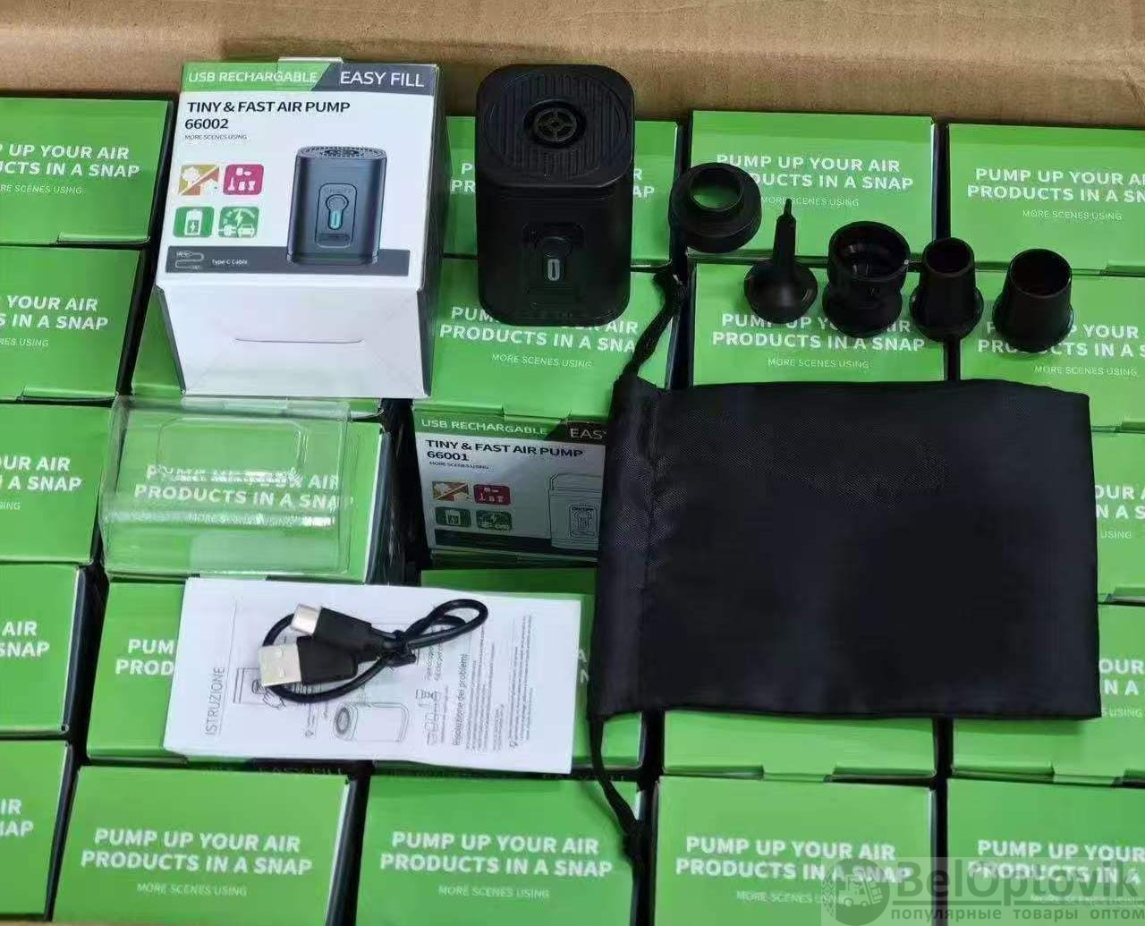 Мини электрический воздушный насос с пятью адаптерами, 2-в-1 для быстрого надувания и сдувания, портативное зарядное устройство с LED-светом, компактный размер для легкого путешествия